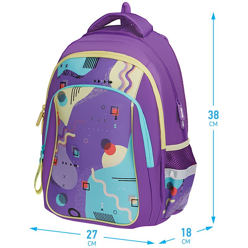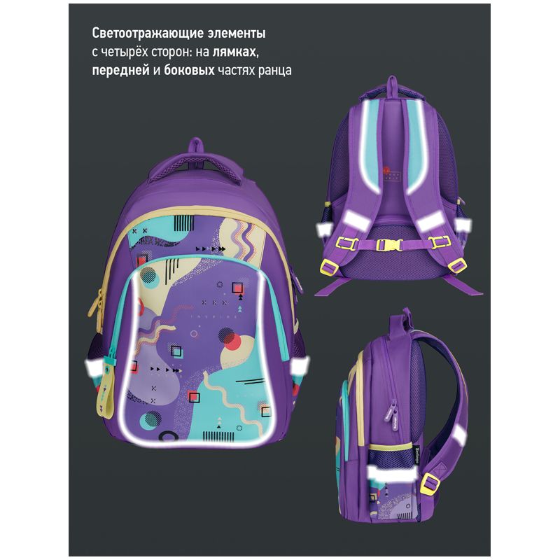 Эргономичная вентилируемая спинка, широкие регулируемые лямки и нагрудное крепление обеспечивают равномерное распределение нагрузки на позвоночник, а усиленное дно, плотная ручка и петля для подвешивания делают рюкзак максимально удобным. Световозвращающие элементы помогают обеспечить безопасность ребенка в темное время суток. Вес изделия 700 граммов.