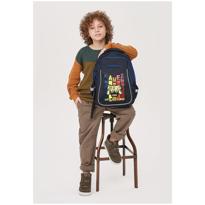 Жесткая эргономичная вентилируемая спинка, широкие регулируемые лямки обеспечивают равномерное распределение нагрузки на позвоночник, а усиленное дно, плотная ручка и петля для подвешивания делают рюкзак максимально удобным. Световозвращающие элементы помогают обеспечить безопасность ребенка в темное время суток.