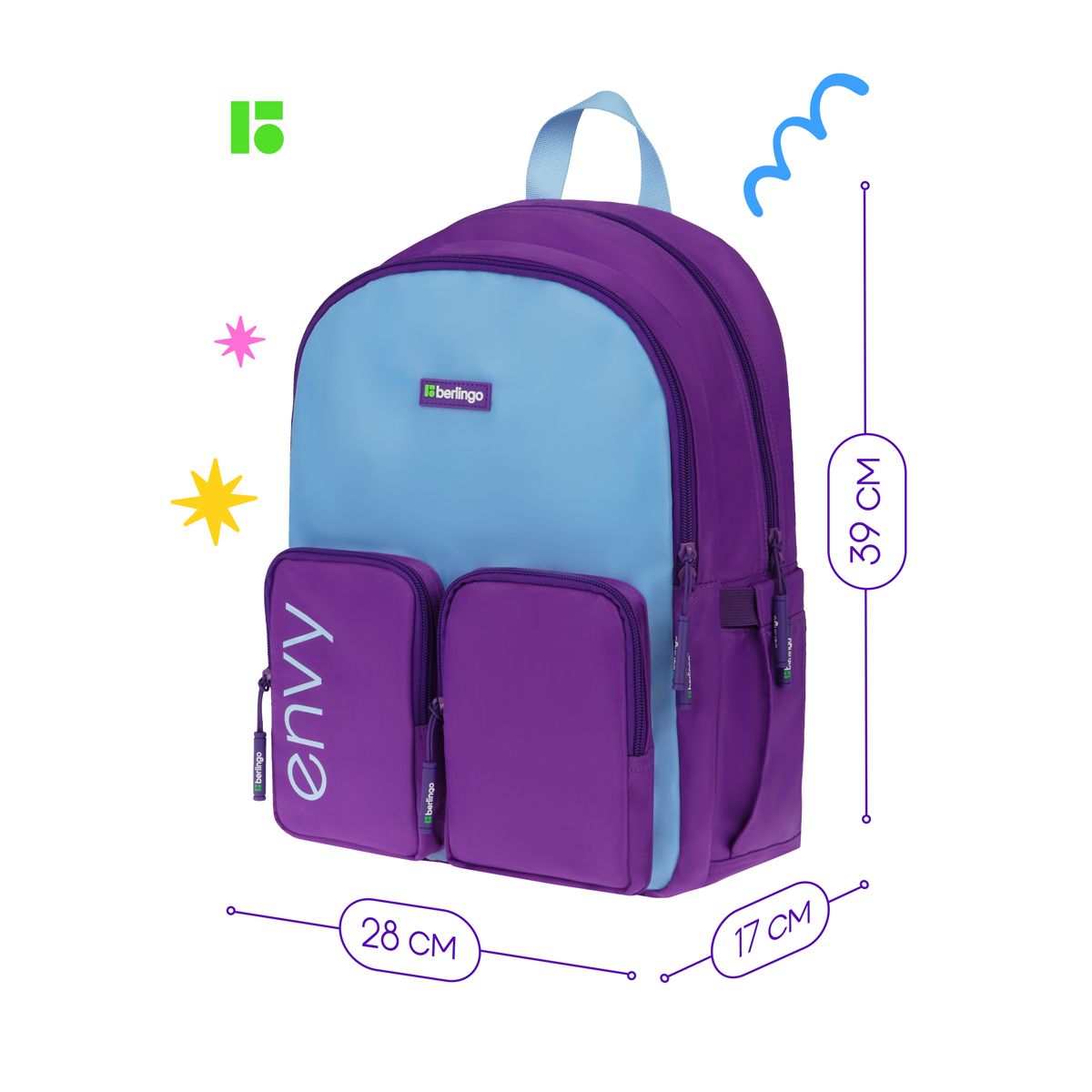 Рюкзак Berlingo "Envy" 2 отделения, 4 кармана, уплотненная спинка, 39*28*17см, голубой