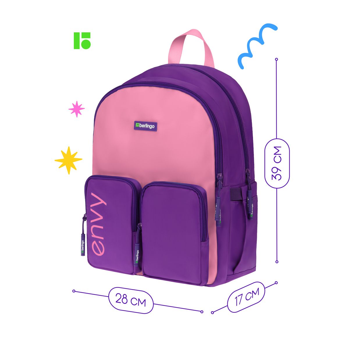 Рюкзак Berlingo "Envy" 2 отделения, 4 кармана, уплотненная спинка, 39*28*17см, розовый