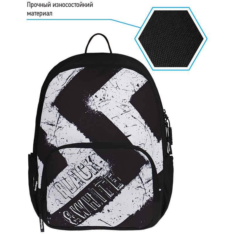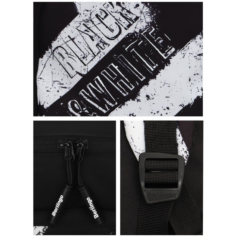 Рюкзак Berlingo Light "Black White" 39,5*28*16см, 2 отделения, 3 кармана, уплотненная спинка