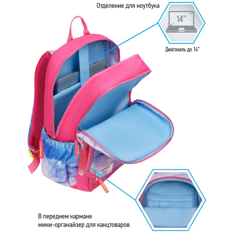 Рюкзак Berlingo Light "Sky pink" 39,5*28*16см, 2 отделения, 3 кармана, уплотненная спинка