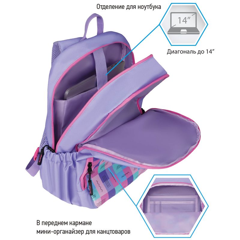 Рюкзак Berlingo Light "Squares" 39,5*28*16см, 2 отделения, 3 кармана, уплотненная спинка