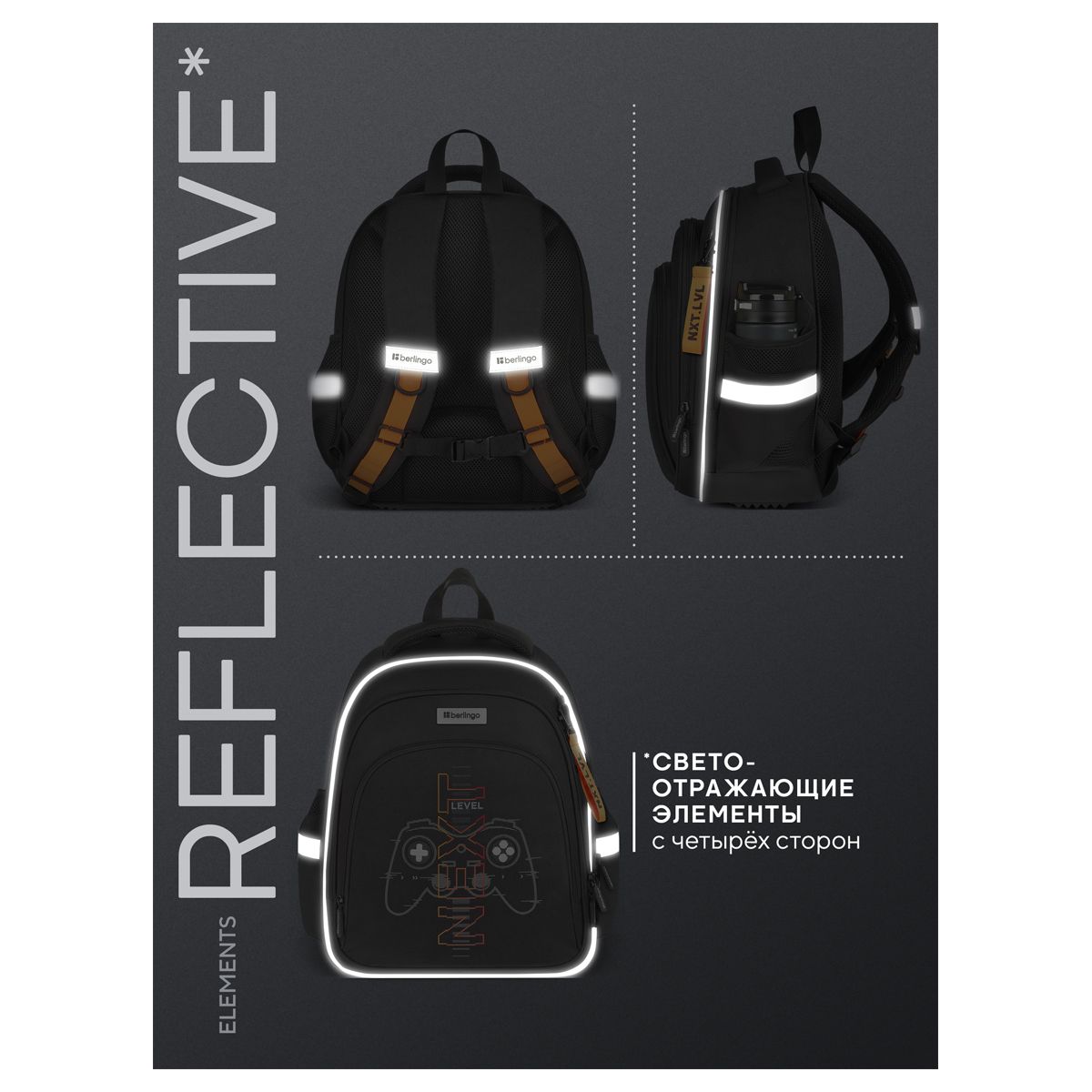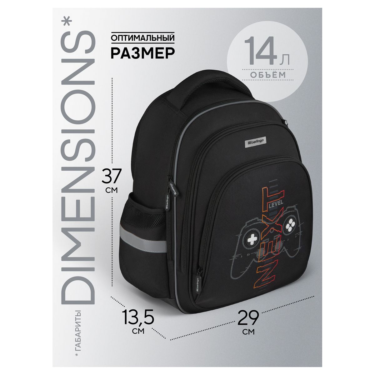 Рюкзак Berlingo OrthoFit "NXT LVL" 37*29*13,5см, 3 отделения, 2 кармана, эргономичная спинка