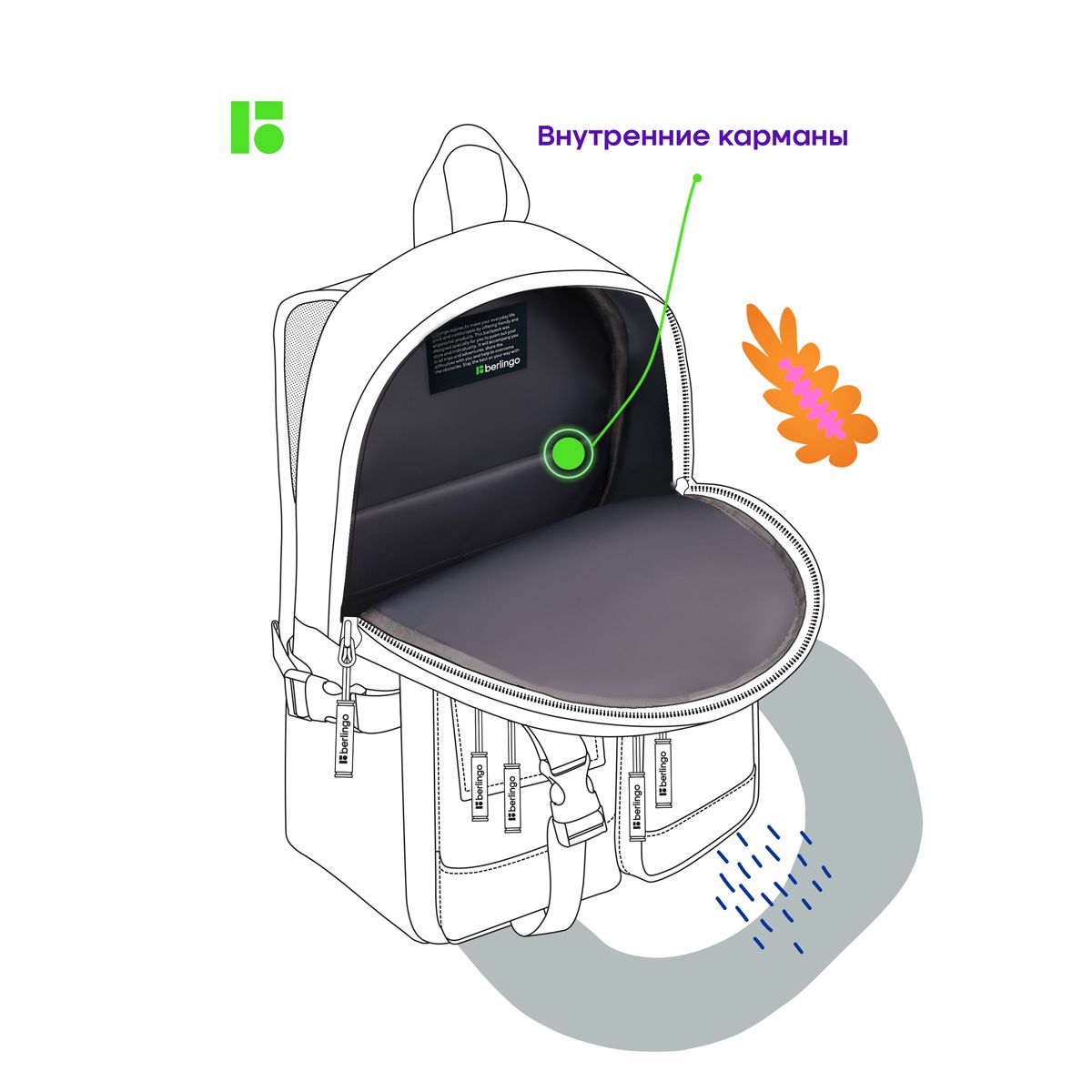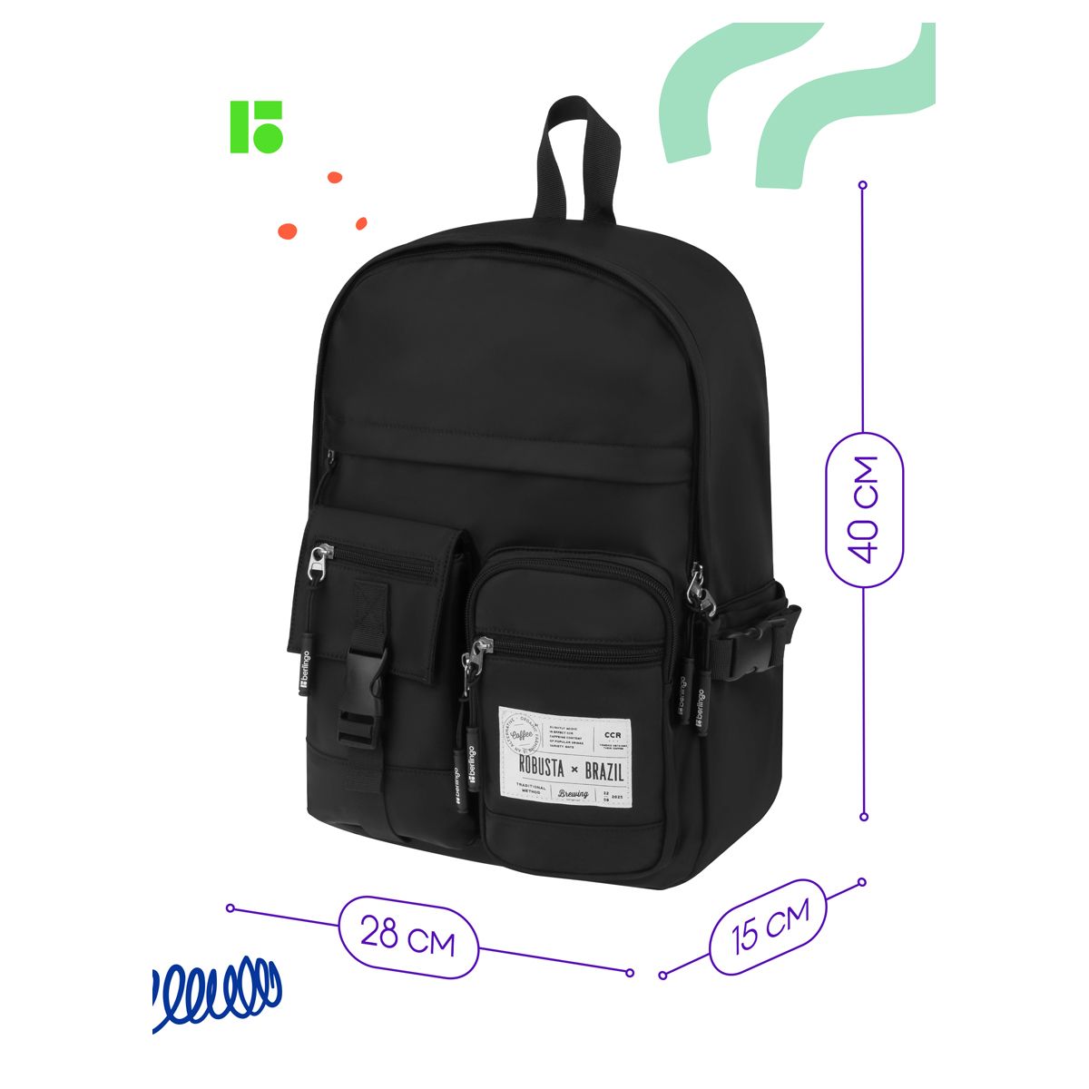Рюкзак Berlingo Tasty "Black rubusta", 40*28*15см, 1 отделение, 7 карманов, уплотненная спинка