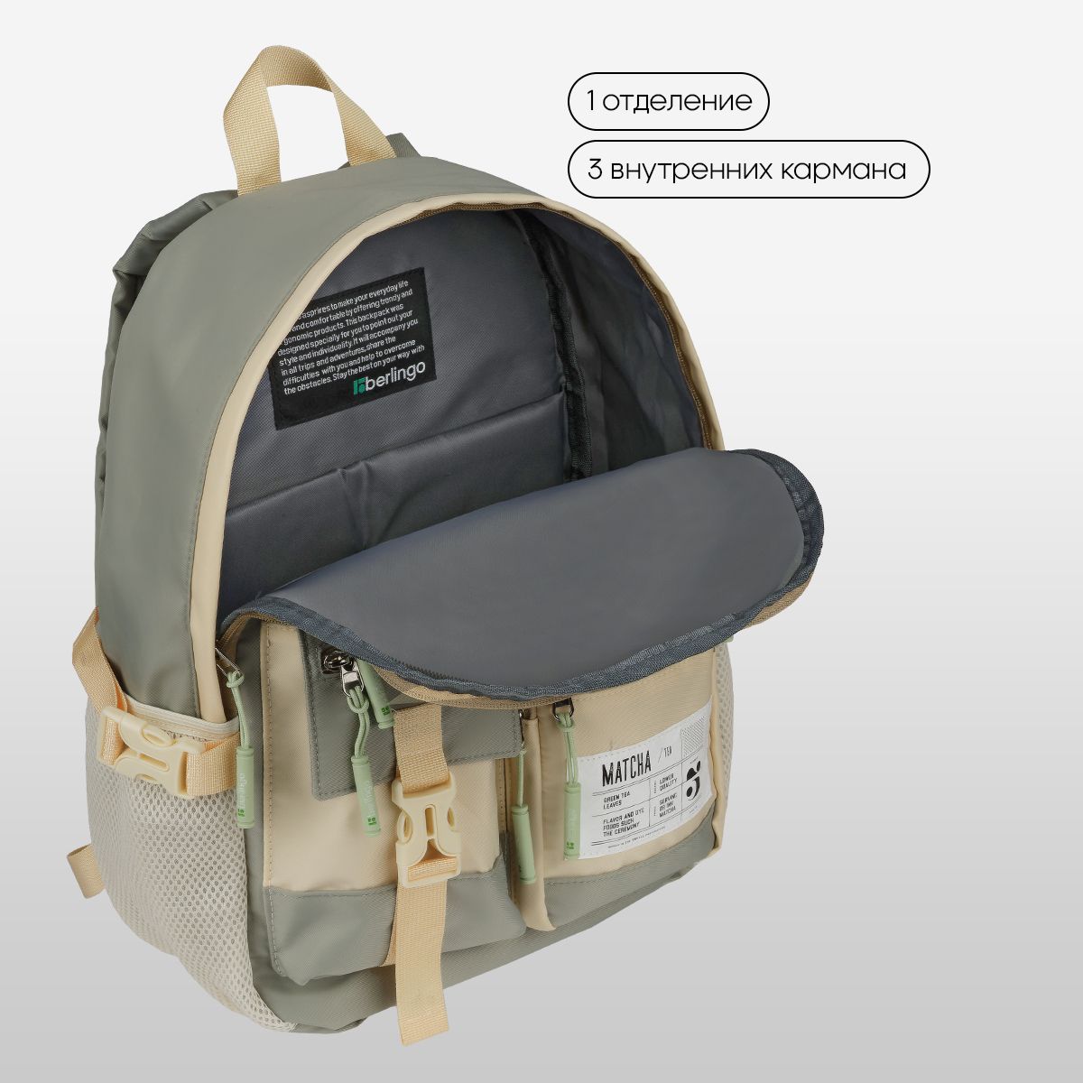 Рюкзак Berlingo Tasty "Green matcha", 40*28*15см, 1 отделение, 7 карманов, уплотненная спинка