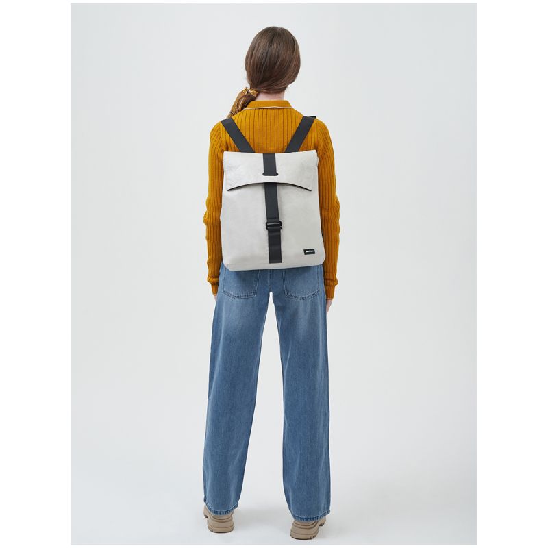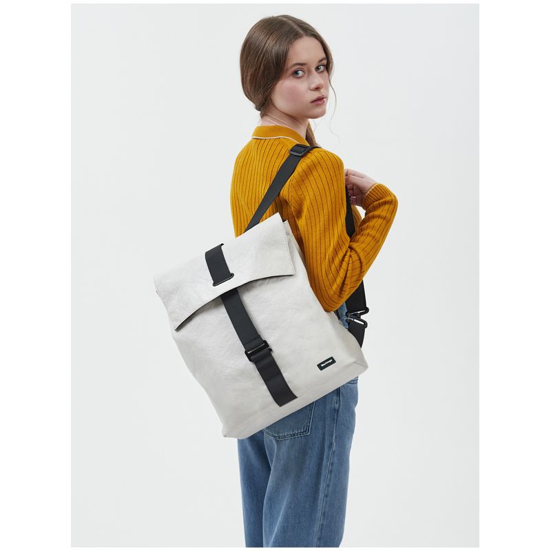 Рюкзак выполнен из высокопрочного водонепроницаемого материала Tyvek, внешне напоминающего дизайнерскую бумагу. Стильные пастельные цвета придают особый шарм данной модели.