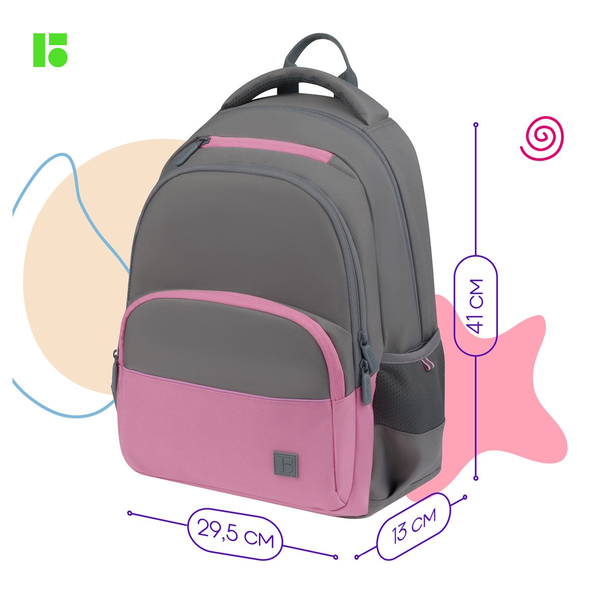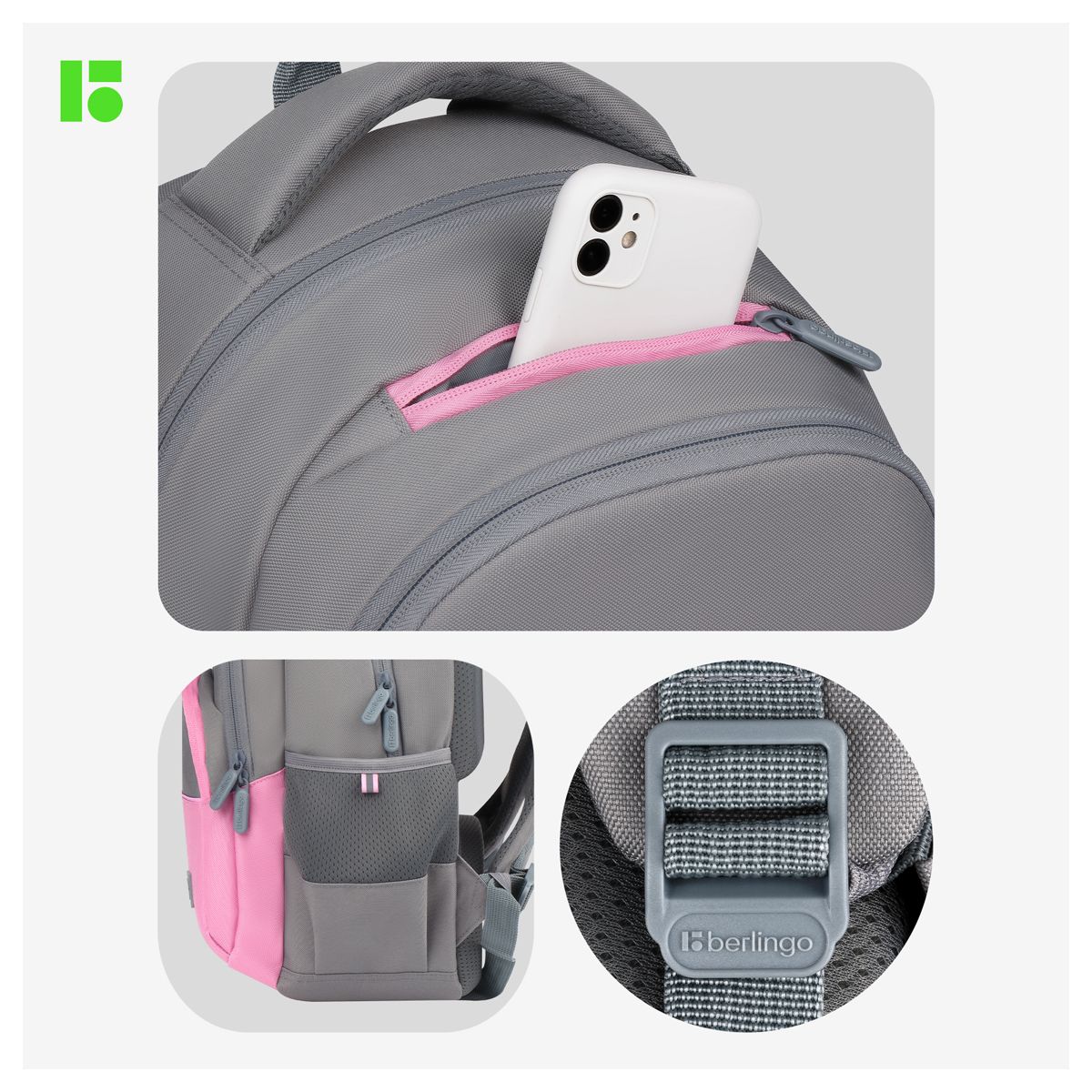 Рюкзак Berlingo U3 "Grey-pink" 41*29,5*13,5см, 2 отделения, 4 кармана, эргономичная спинка