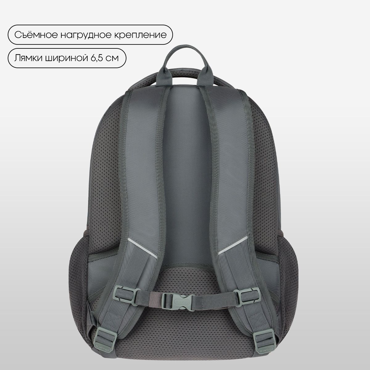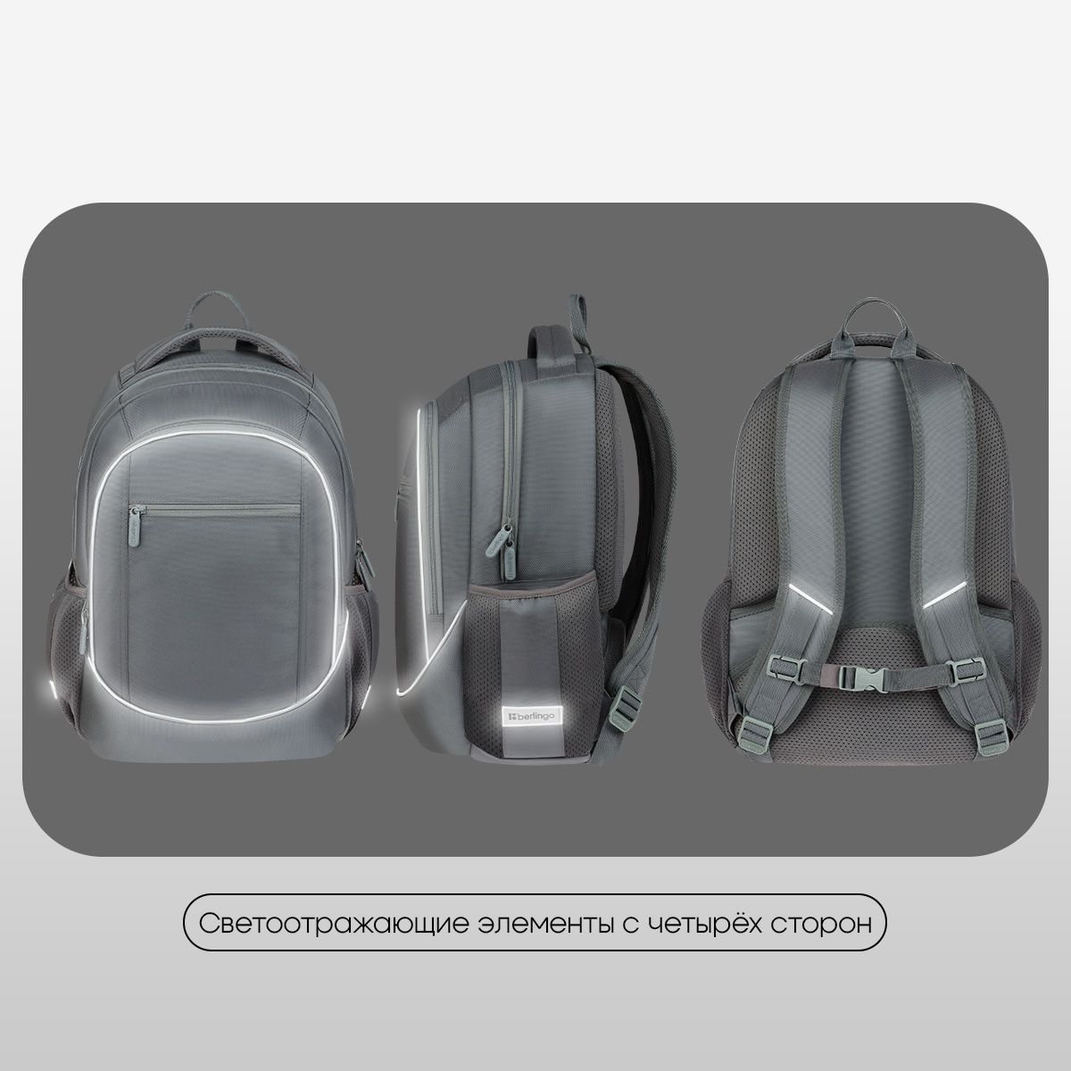 В рюкзаке предусмотрены 2 отделения и 3 кармана. Внутри имеется 1 карман на резинке, 1 карман на молнии, 2 открытых кармана и 1 карман из сетки на молнии. Эргономичная вентилируемая спинка, широкие регулируемые лямки и нагрудное крепление обеспечивают равномерное распределение нагрузки на позвоночник, а усиленное дно, плотная ручка для переноски и ручка-петля делают рюкзак максимально удобным. Световозвращающие элементы помогают обеспечить безопасность ребенка в темное время суток.