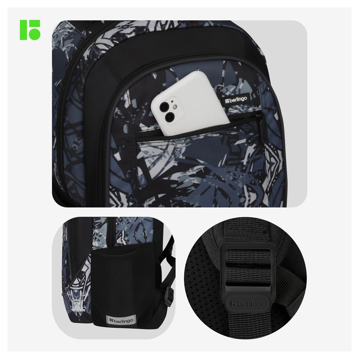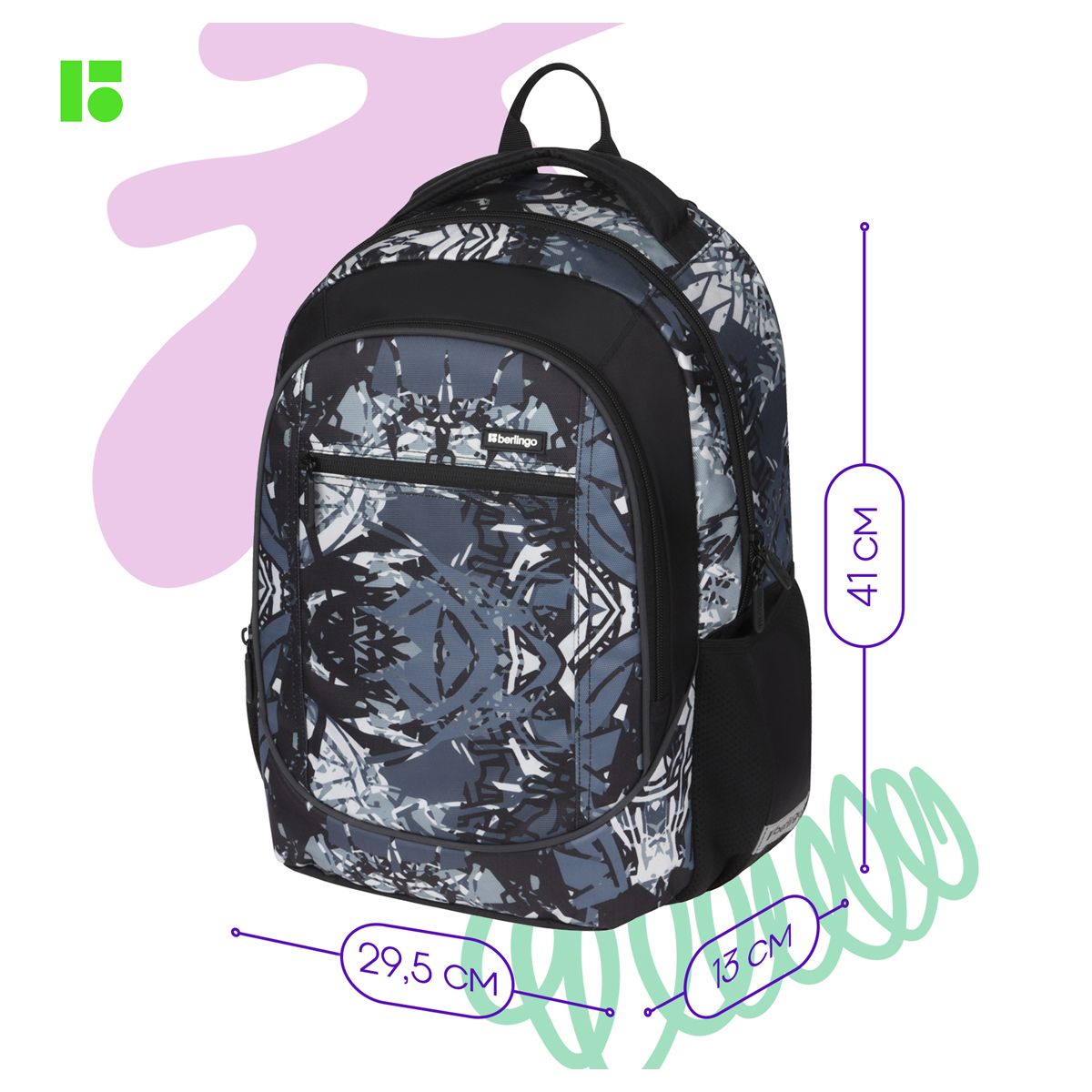 Рюкзак Berlingo U4 "Grey pattern" 41*29,5*13см, 2 отделения, 3 кармана, эргономичная спинка