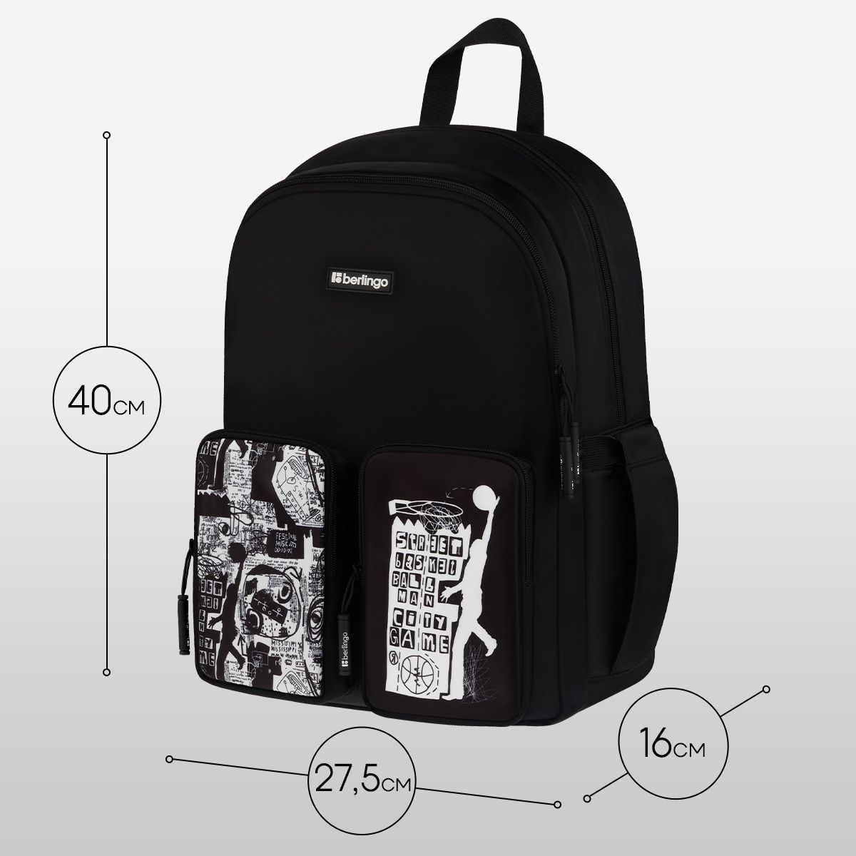 Рюкзак Berlingo UrbanBlack "Street Style" 40*27,5*16см, 2 отделения, 4 кармана, эргономичная спинка