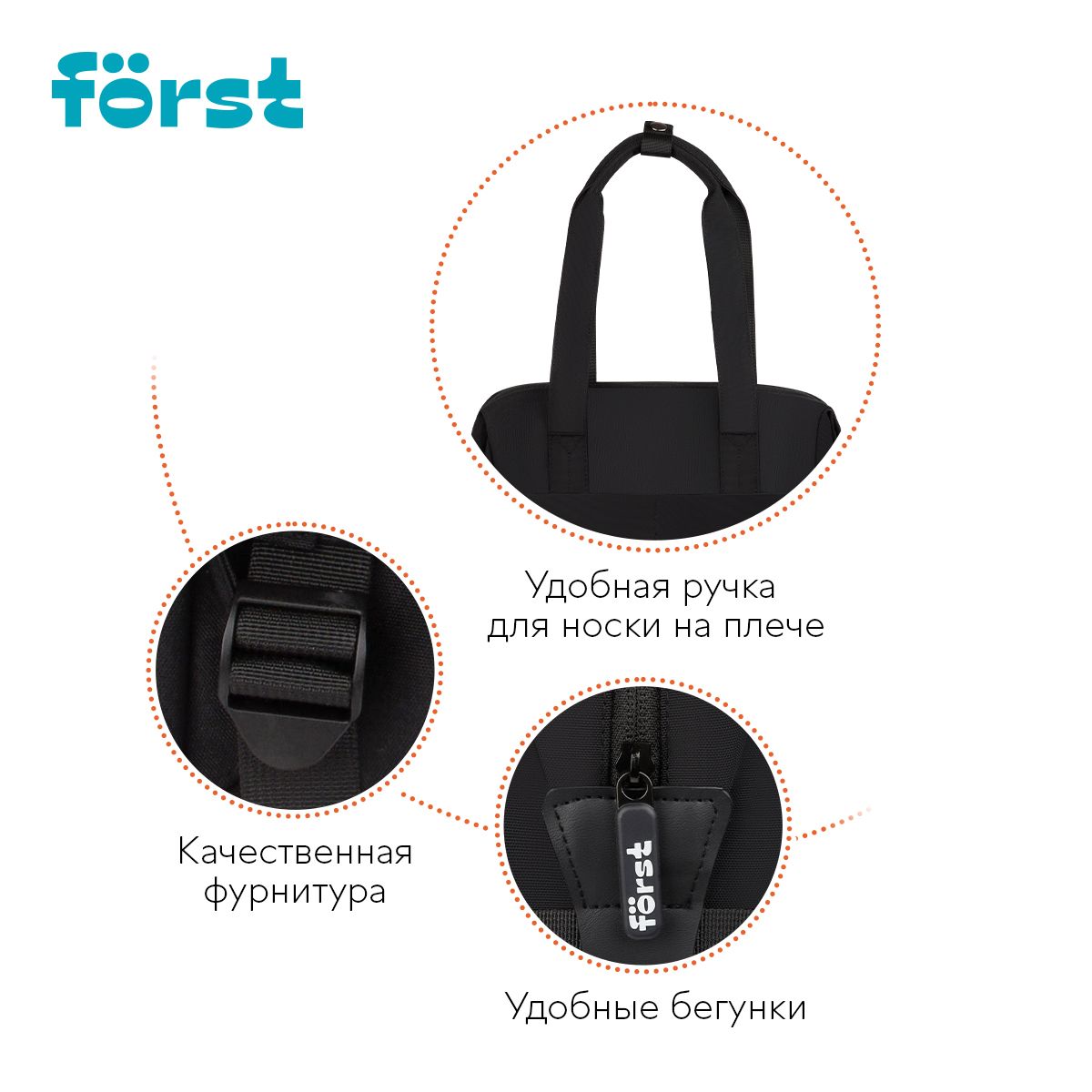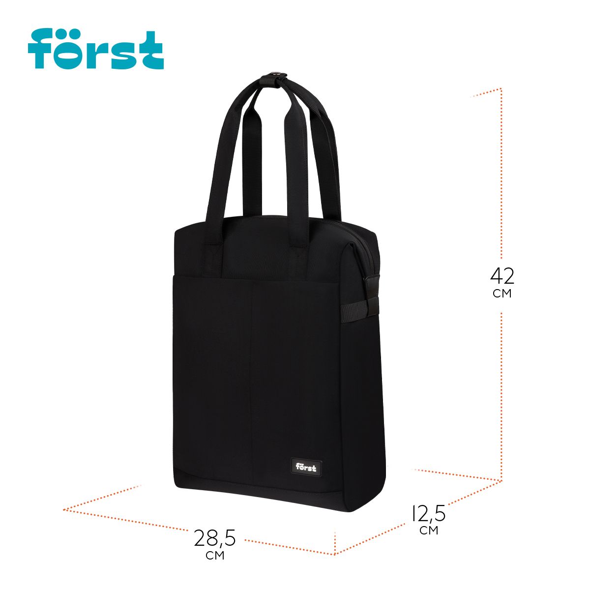 Рюкзак Först F-Casual "Dark Black" 42*28,5*12,5см, 1 отделение, 1 карман, уплотненная спинка