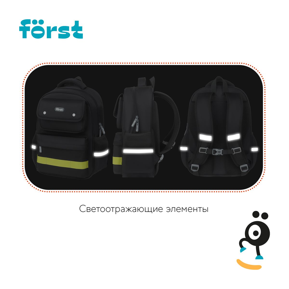 Рюкзак Först F-Color "Lime" 39,5*28,5*14см, 1 отделение, 4 кармана, уплотненная спинка