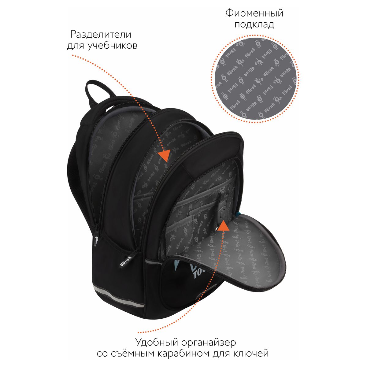 Рюкзак Först F-Cute "Angry" 37*29*17см, 3 отделения, 2 кармана, анатомическая спинка