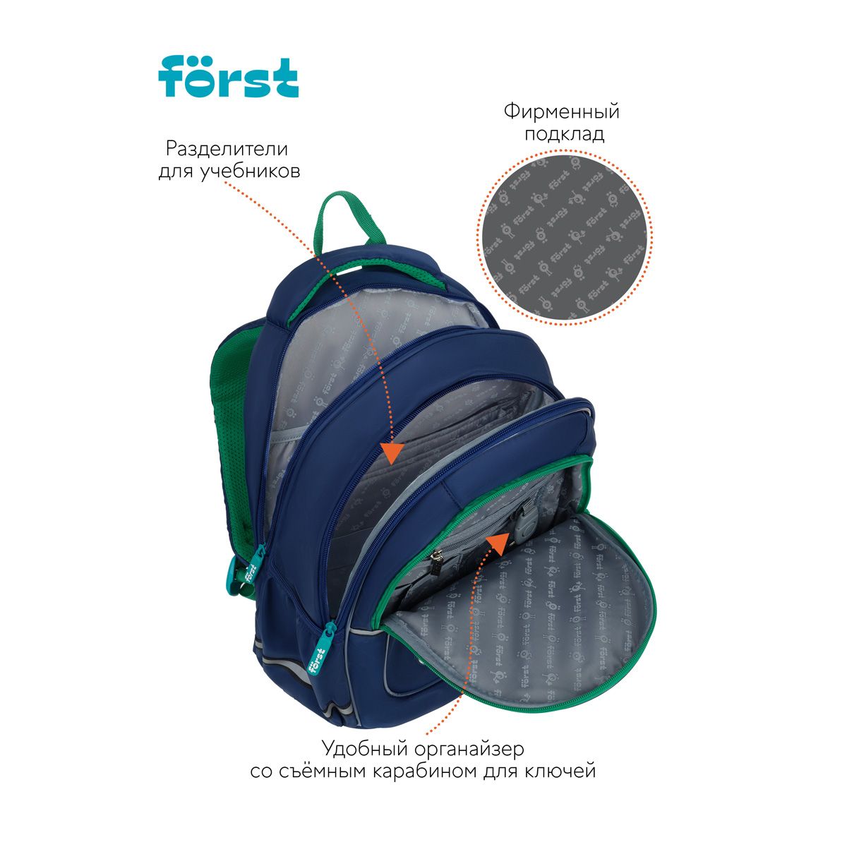 Рюкзак Först F-Cute "BMX" 37*29*17см, 3 отделения, 2 кармана, эргономичная спинка