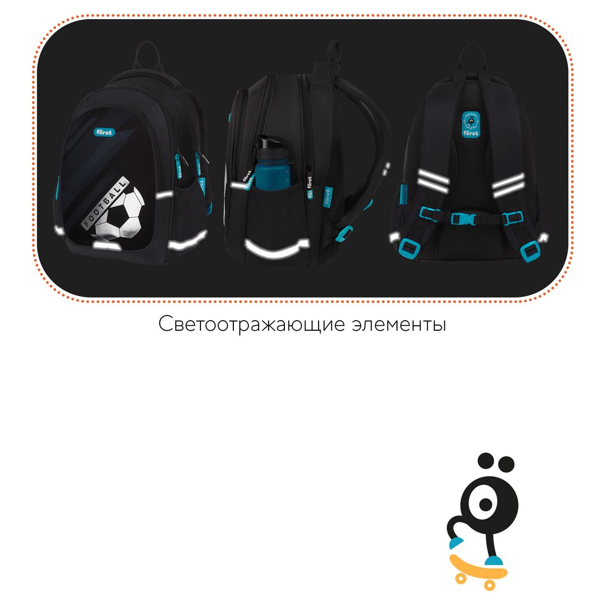 Рюкзак Först F-Cute "Football" 37*29*17см, 3 отделения, 2 кармана, анатомическая спинка