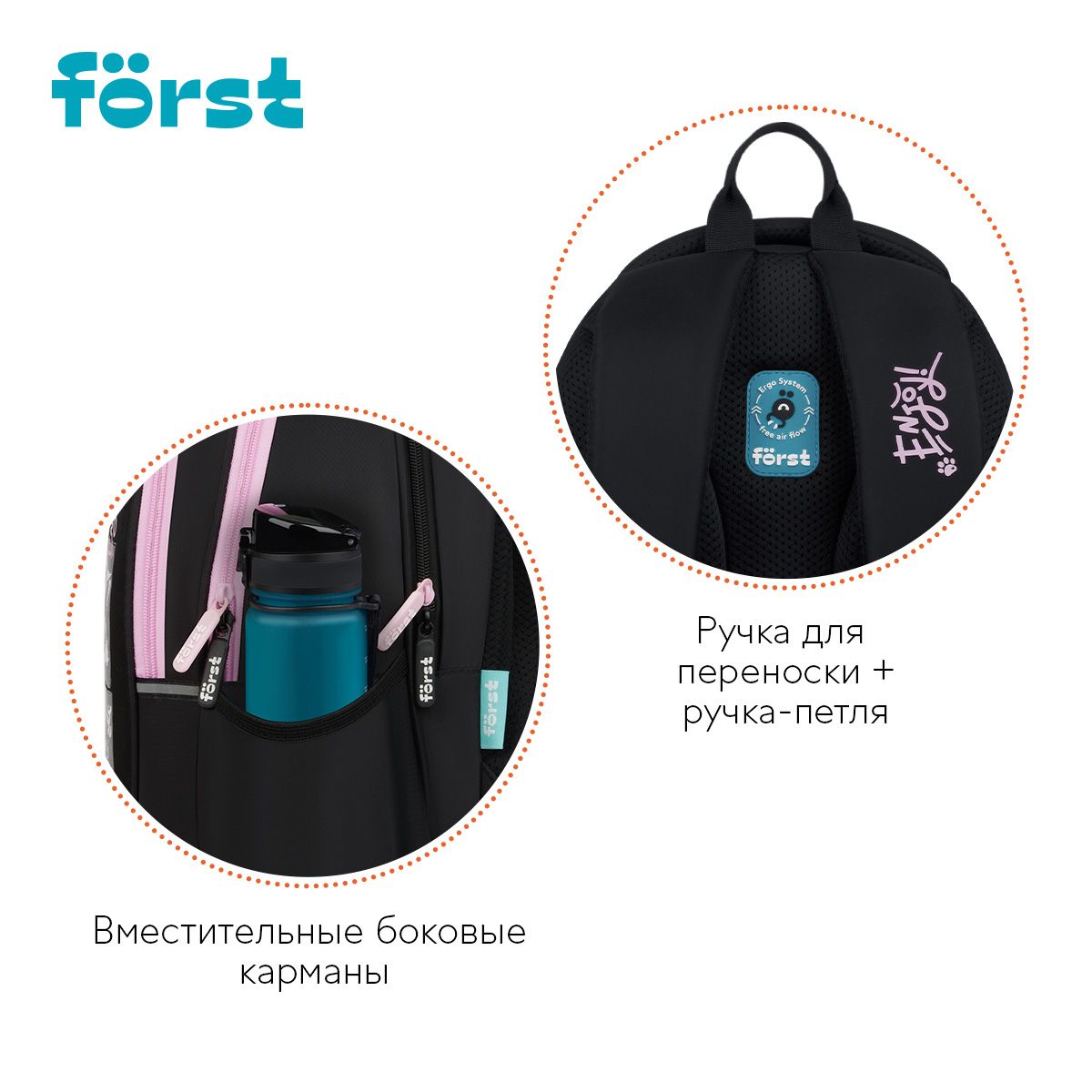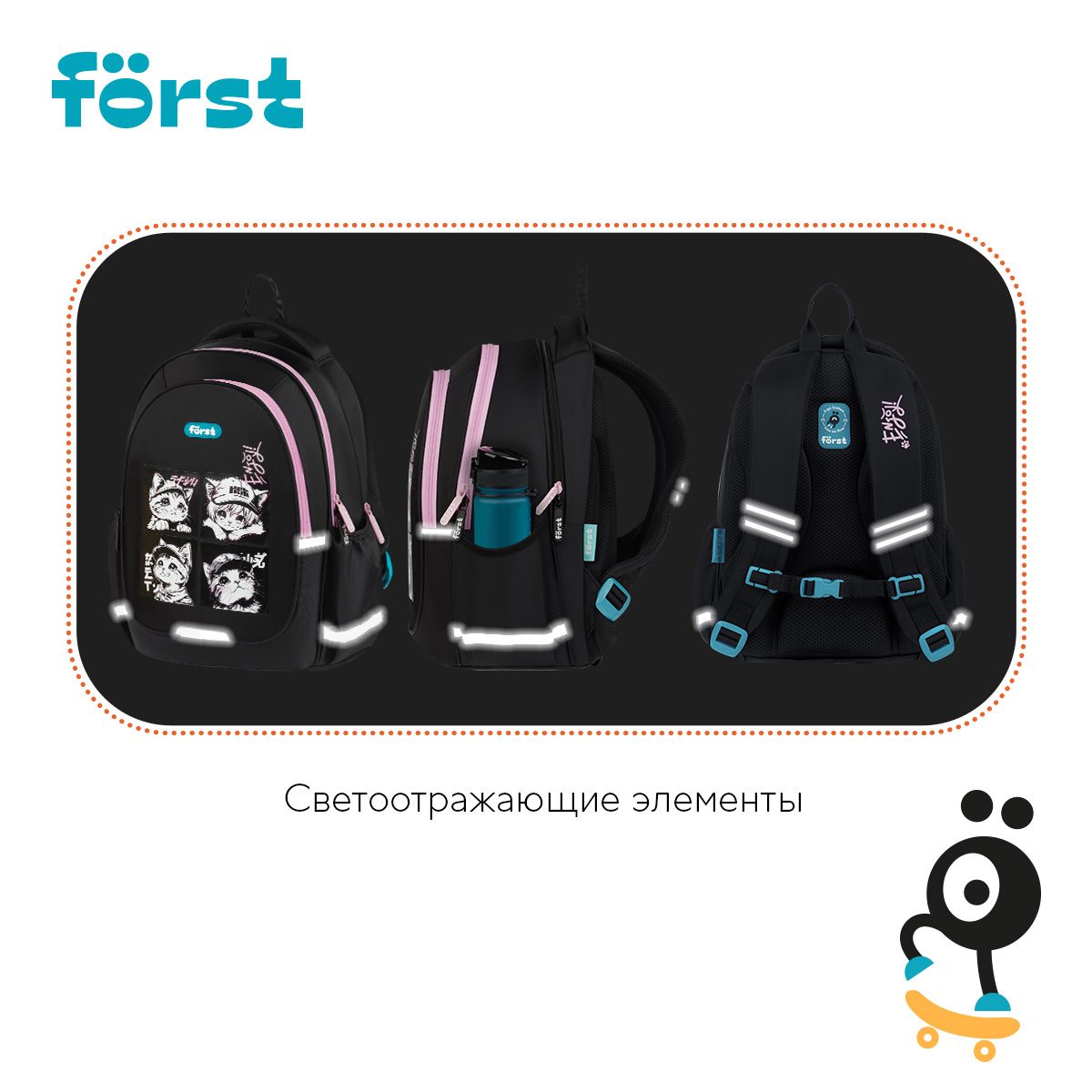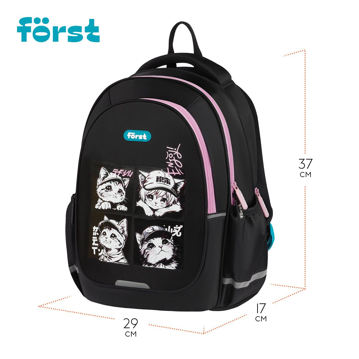 Рюкзак Först F-Cute "Lovely Kittens" 37*29*17см, 3 отделения, 2 кармана, анатомическая спинка