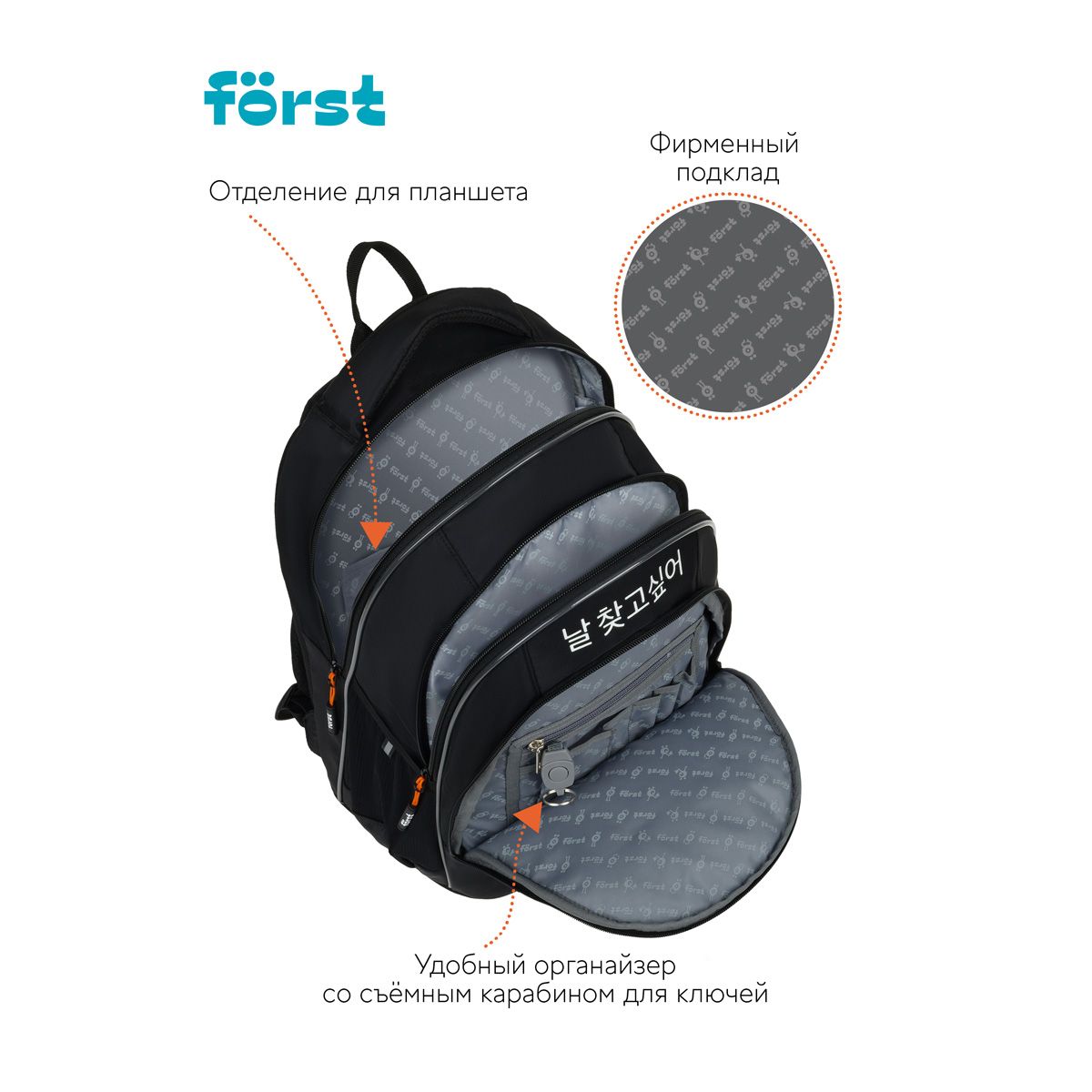 Рюкзак Först F-JUNIOR "Gravity" 38*29*18см, 3 отделения, 2 кармана, эргономичная спинка