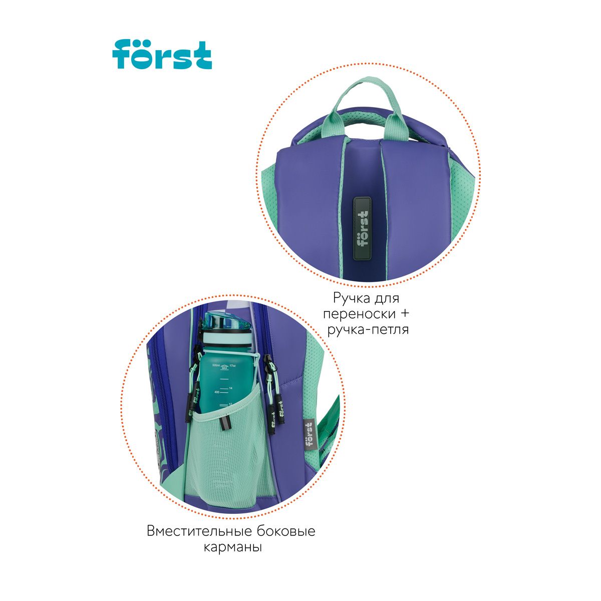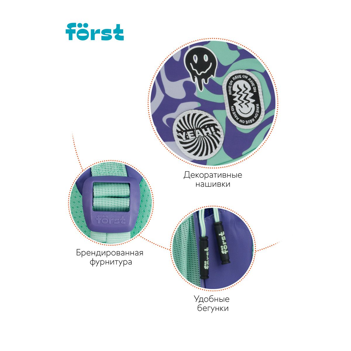 Рюкзак Först F-JUNIOR "Smiley" 38*29*18см, 3 отделения, 2 кармана, эргономичная спинка