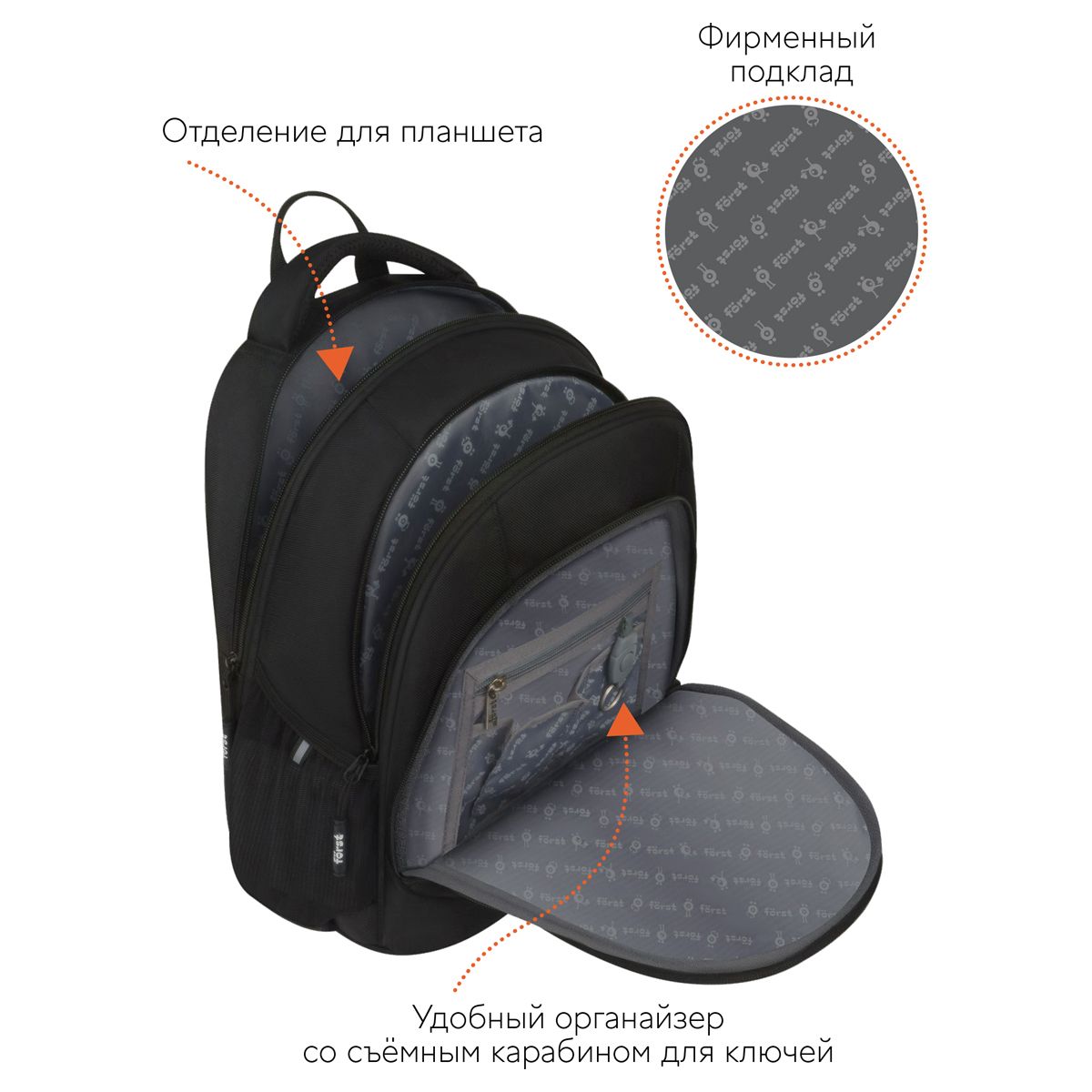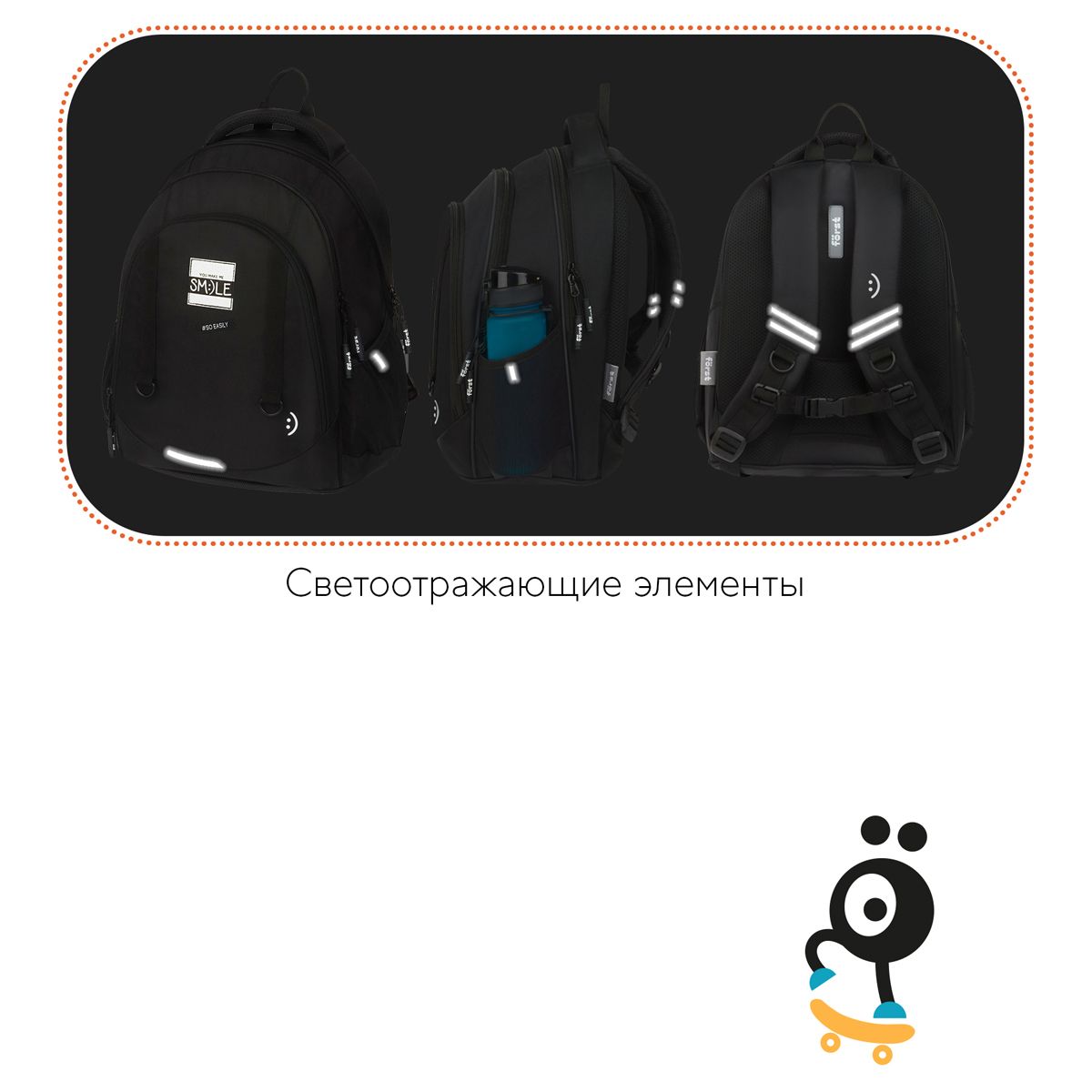 Рюкзак Först F-Junior "You make me smile" 38*29*18см, 3 отделения, 2 кармана, анатомическая спинка