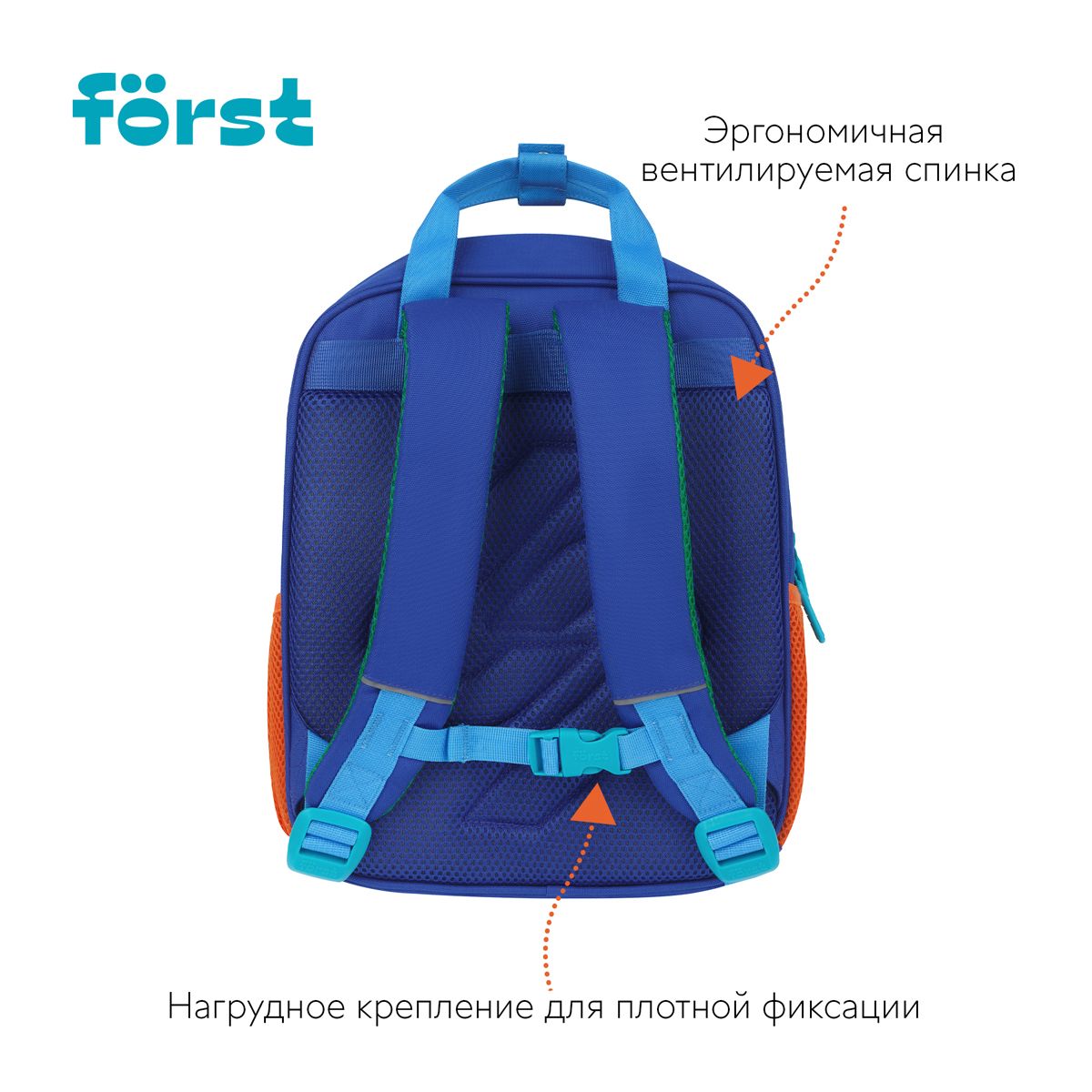 Рюкзак Först F-Kids "Hi, Tiger!" 30,5*25,5*12,5см, 1 отделение, 5 карманов, эргономичная спинка
