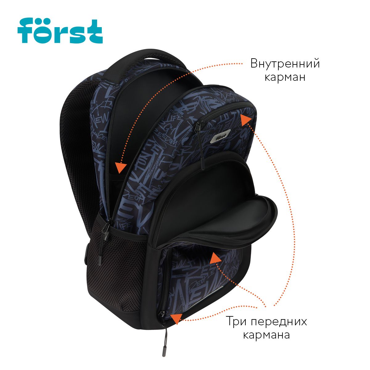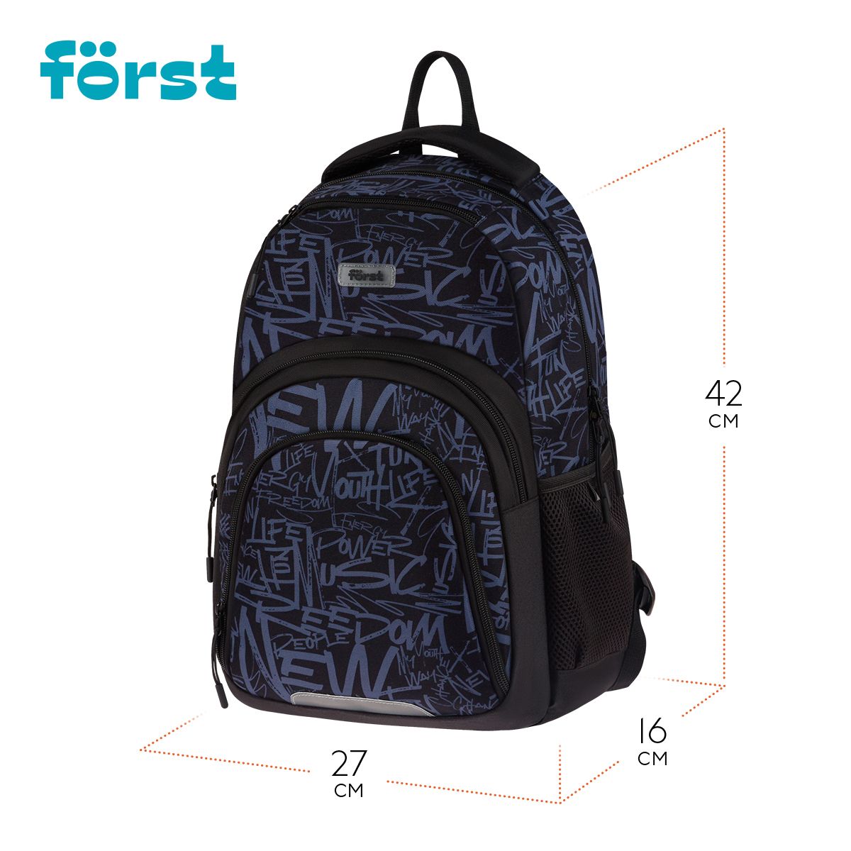Рюкзак Först F-Line "Free people" 42*27*16см, 1 отделение, 5 карманов, уплотненная спинка