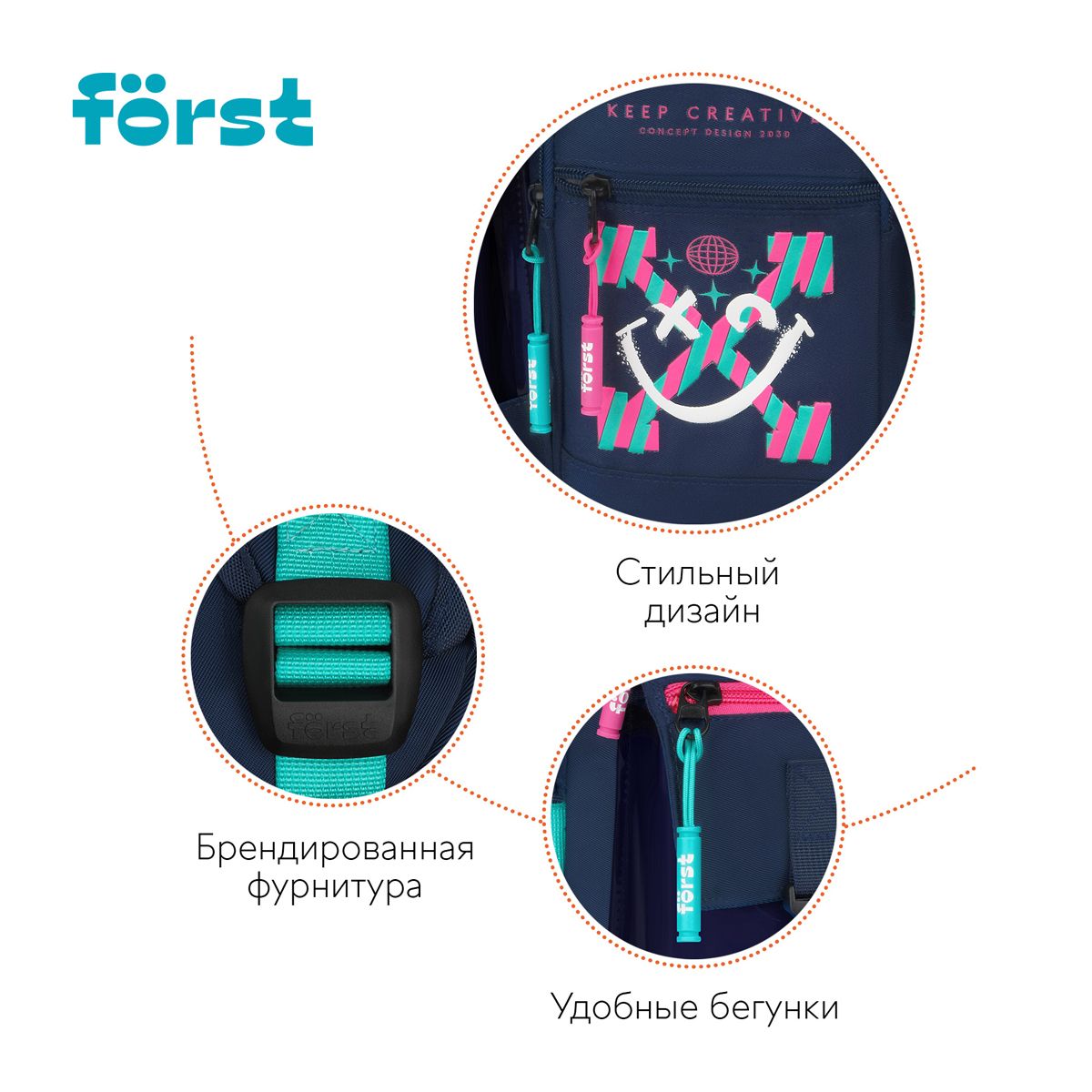 Рюкзак Först F-Teens "Pinky smile" 40*28*15см, 1 отделение, 7 карманов, уплотненная спинка