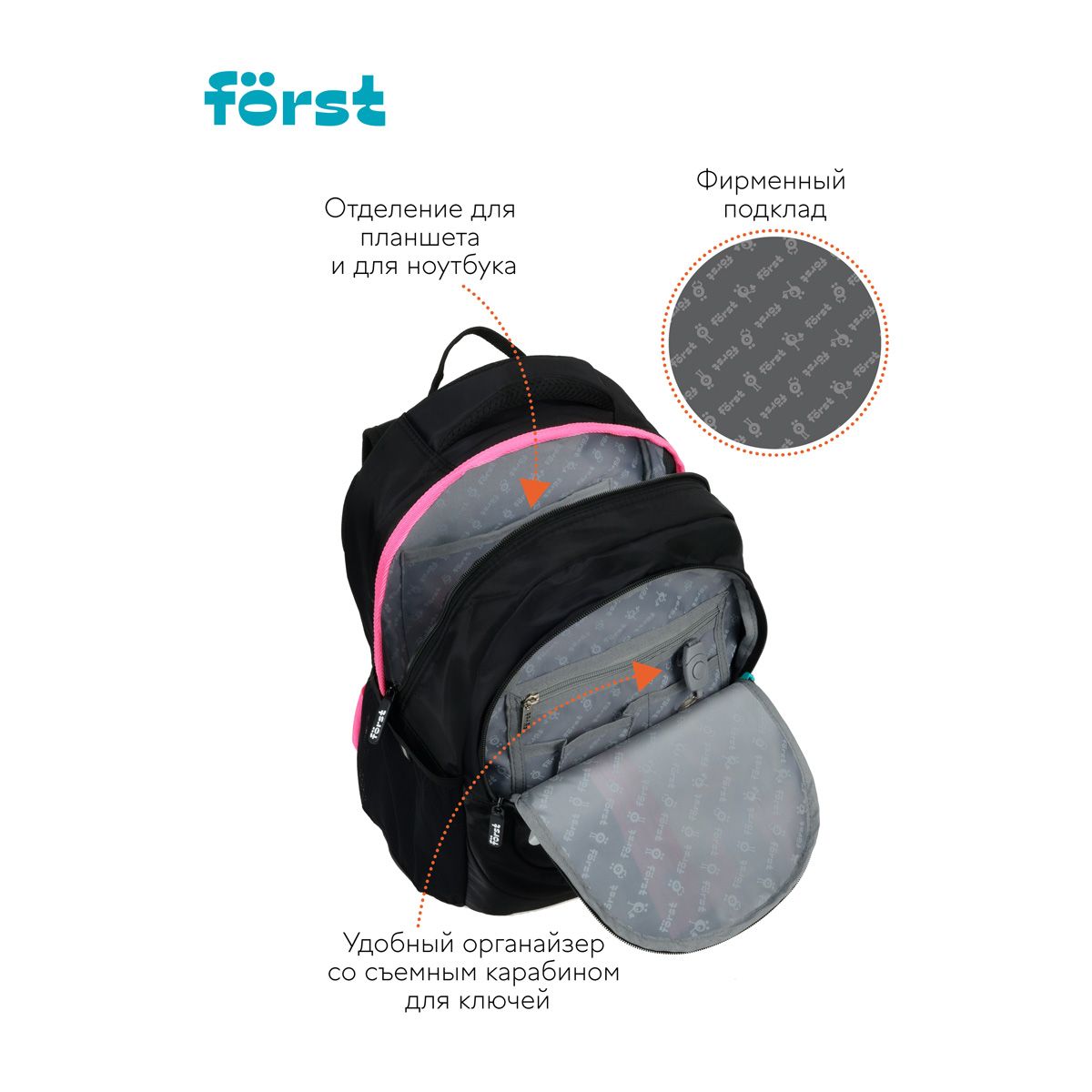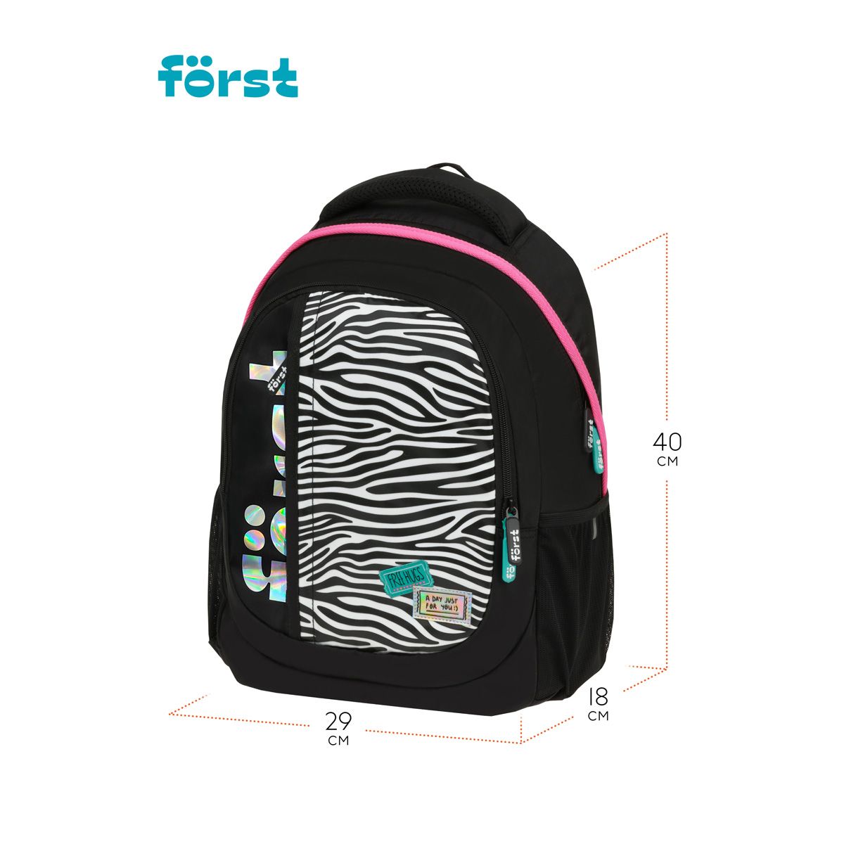 Рюкзак Först F-Trend "Fashion zebra" 40*29*18см, 2 отделения, 3 кармана, эргономичная спинка