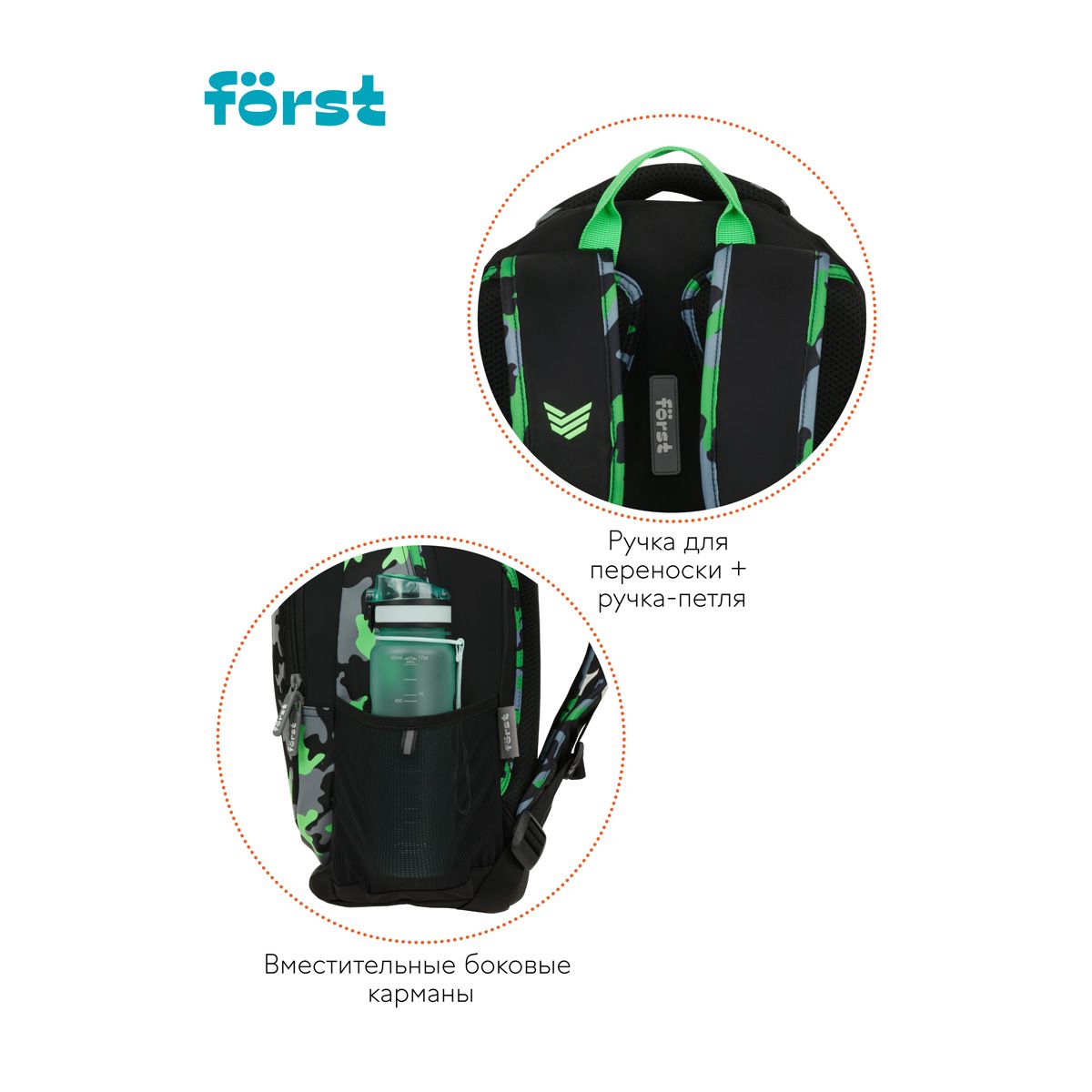 Рюкзак Först F-Trend "Neon military" 40*29*18см, 2 отделения, 3 кармана, эргономичная спинка
