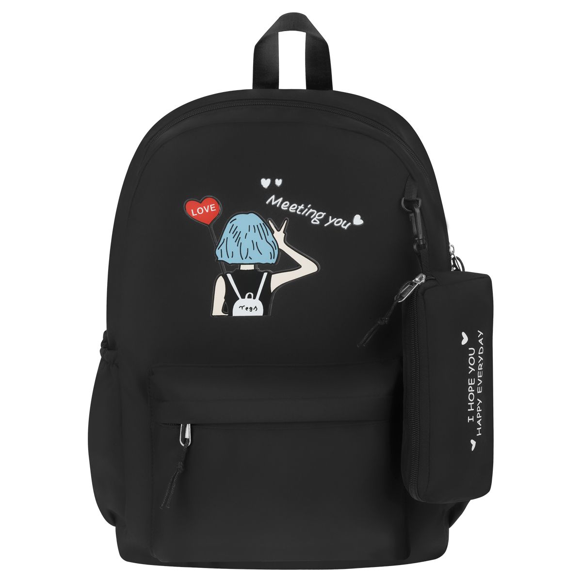 Рюкзак MESHU "Heart", 43*30*13см, 1 отделение, 3 кармана, уплотненная спинка, в комплекте пенал 19,5*9,5*2см