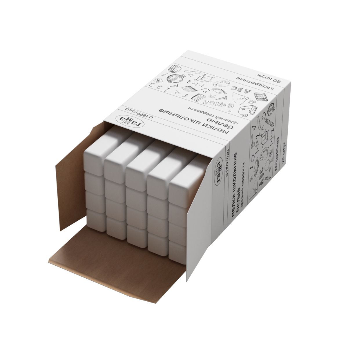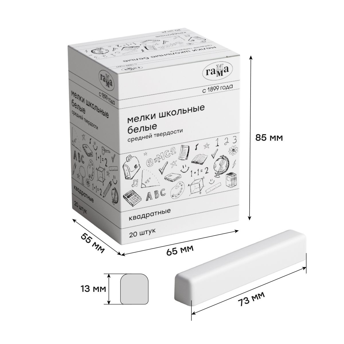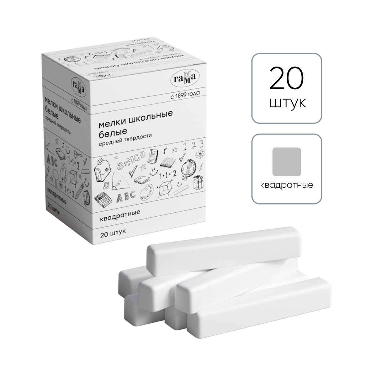 Мел штучный белый Гамма, средней твердости, квадратный, картонная коробка