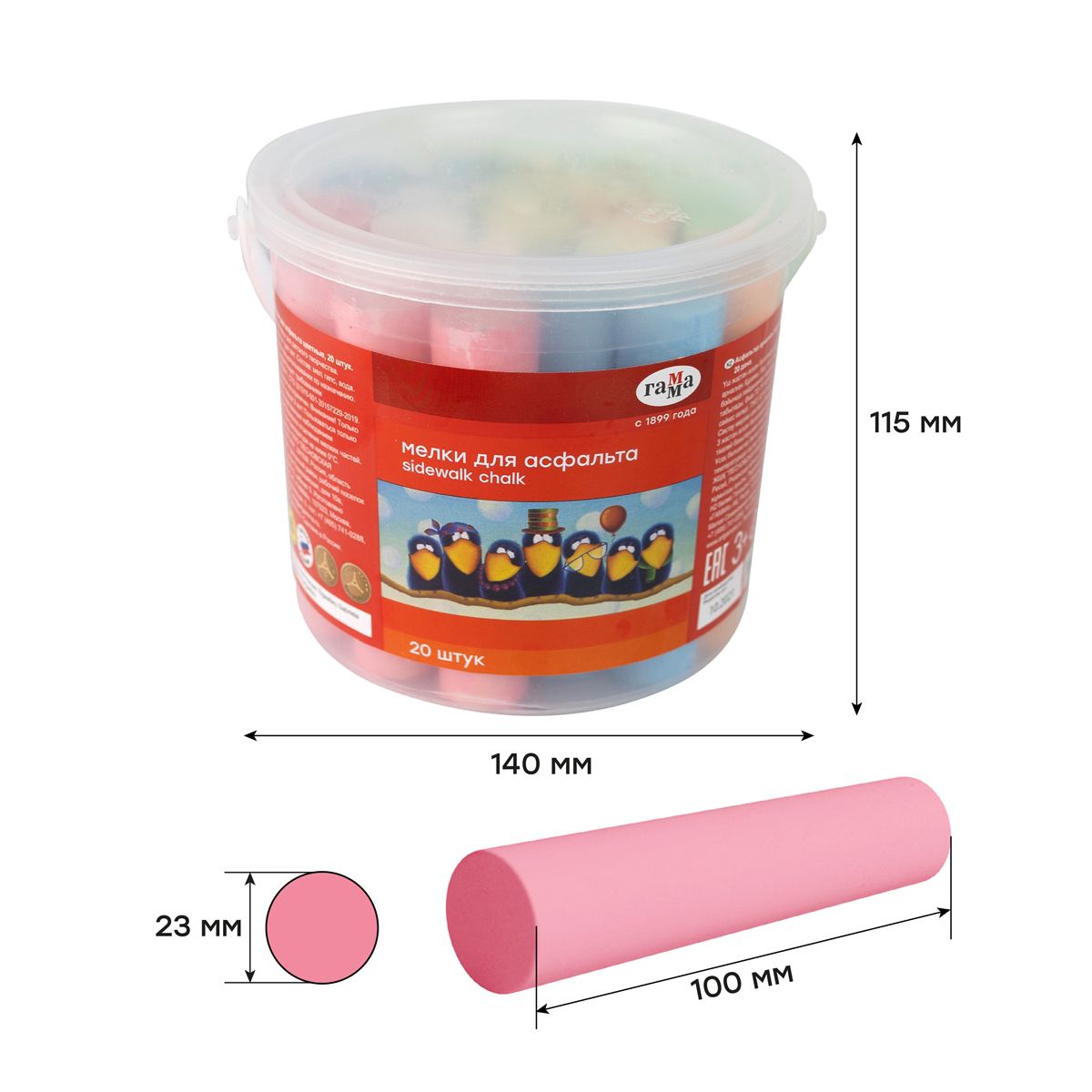 Мелки для асфальта Гамма "Мультики", цветные, 20шт., 6цв., круглые, пластиковое ведро