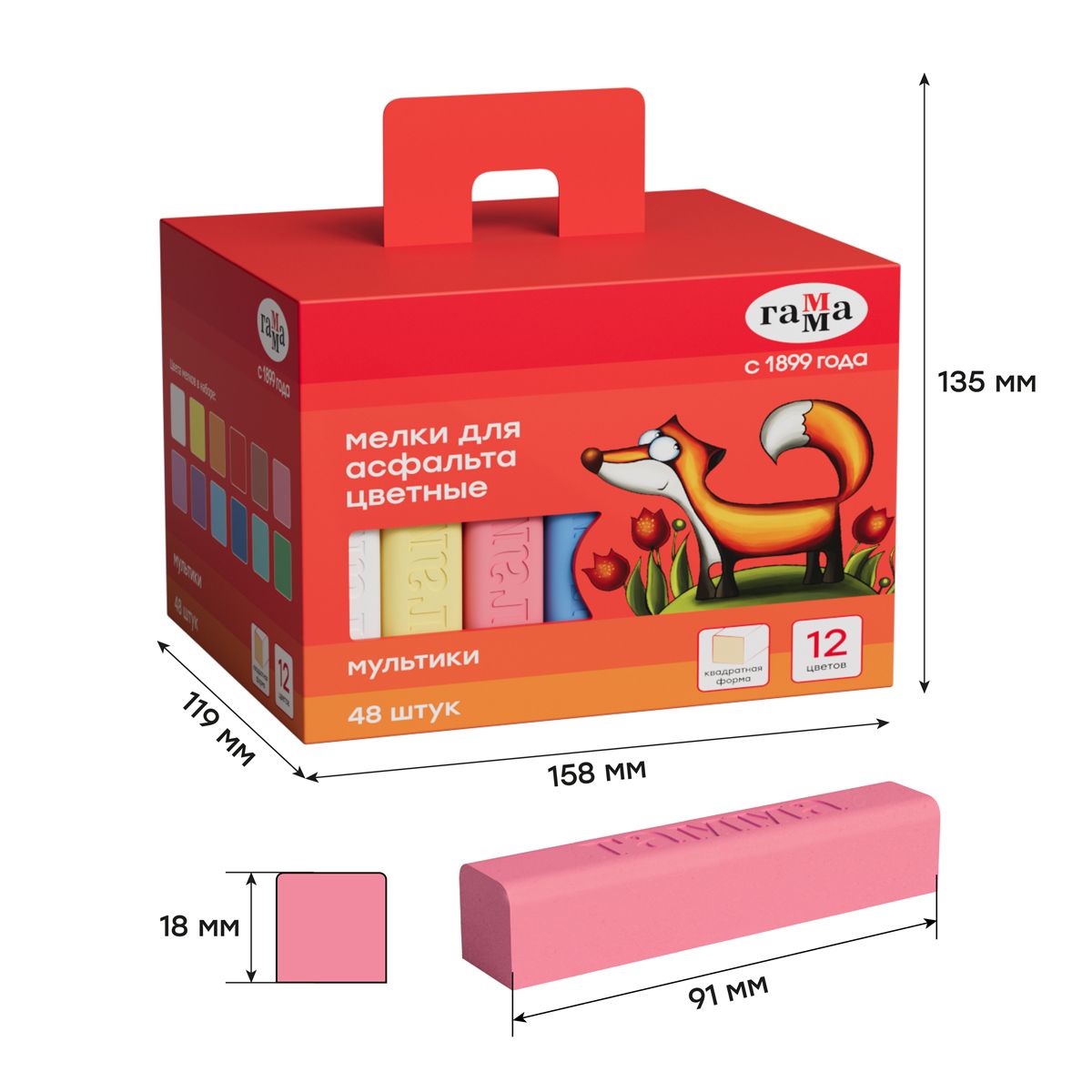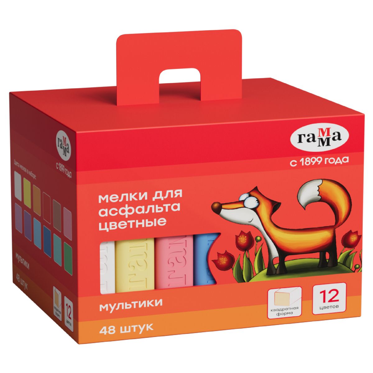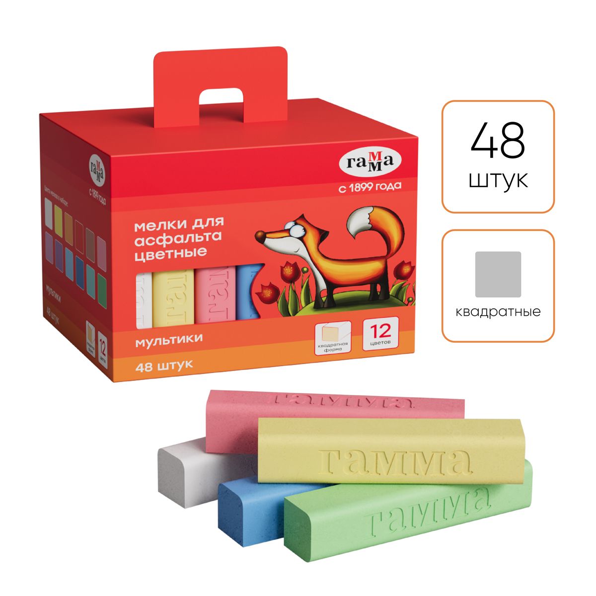 Мелки для асфальта Гамма "Мультики" цветные 48шт., квадратные, картонная коробка
