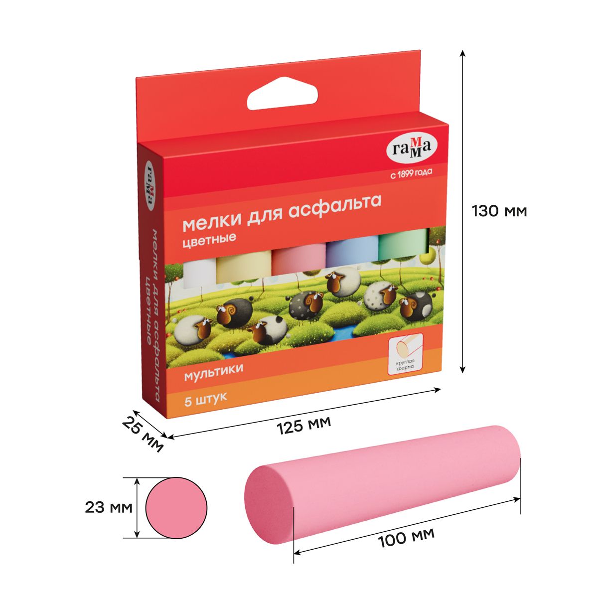 Мелки для асфальта Гамма "Мультики" цветные 5шт., круглые, картонная коробка