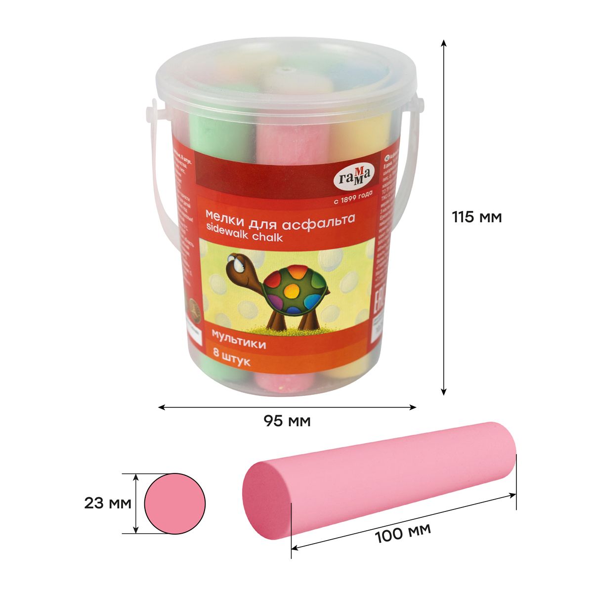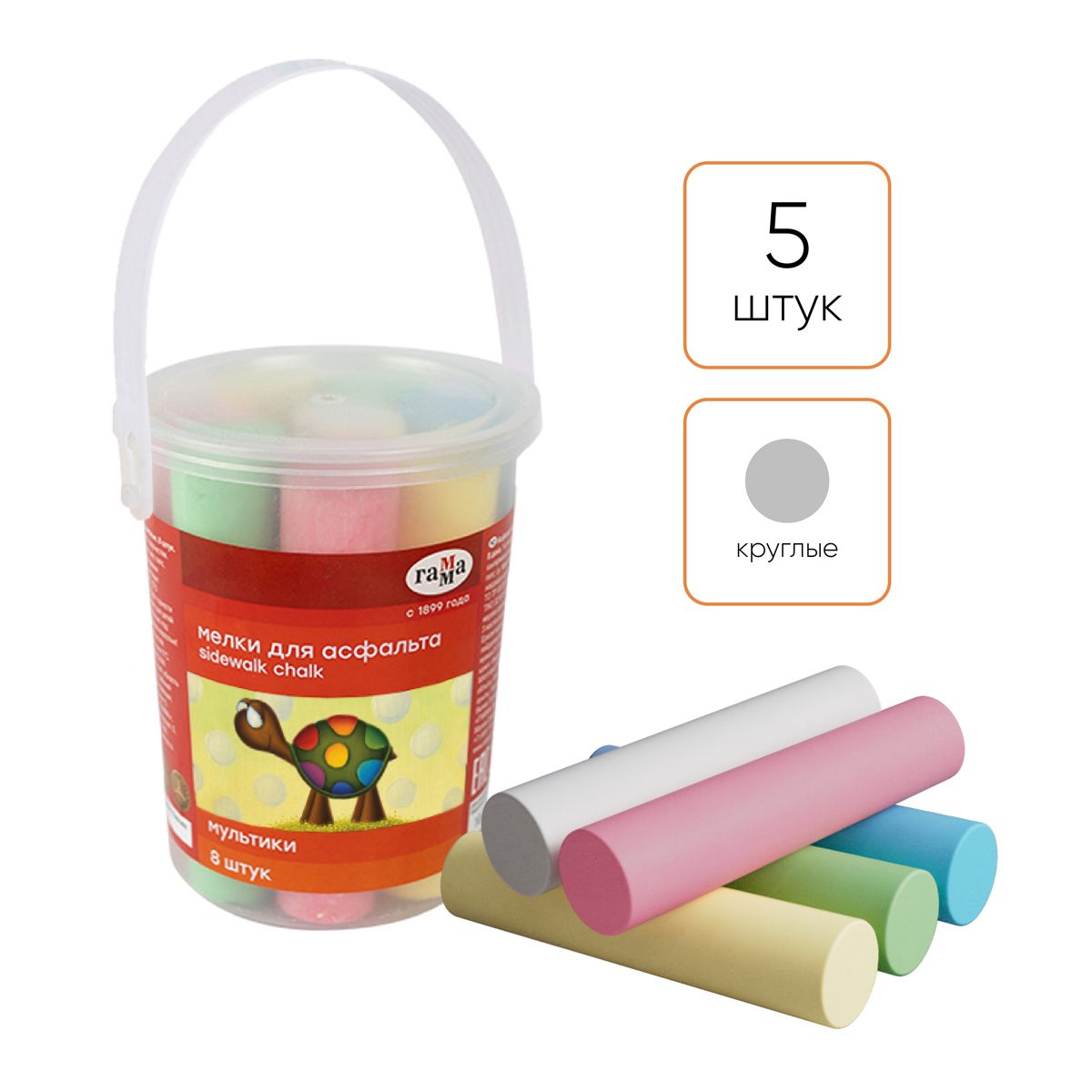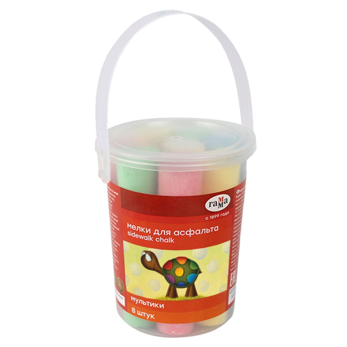 Мелки для асфальта Гамма "Мультики", цветные, 8шт., 5цв., круглые, пластиковое ведро