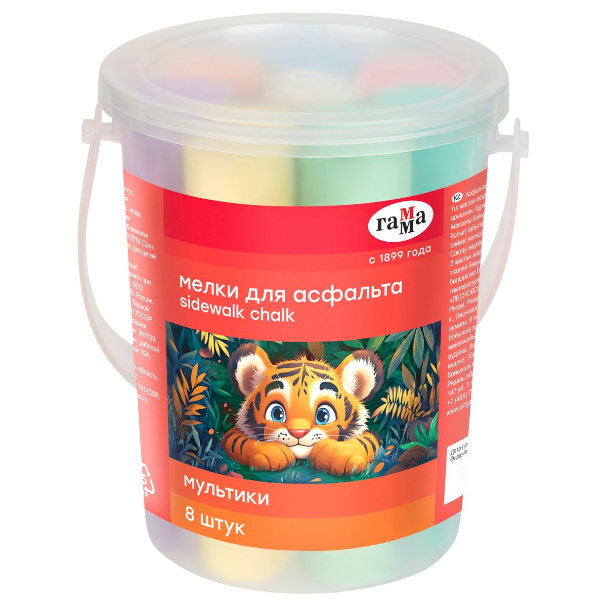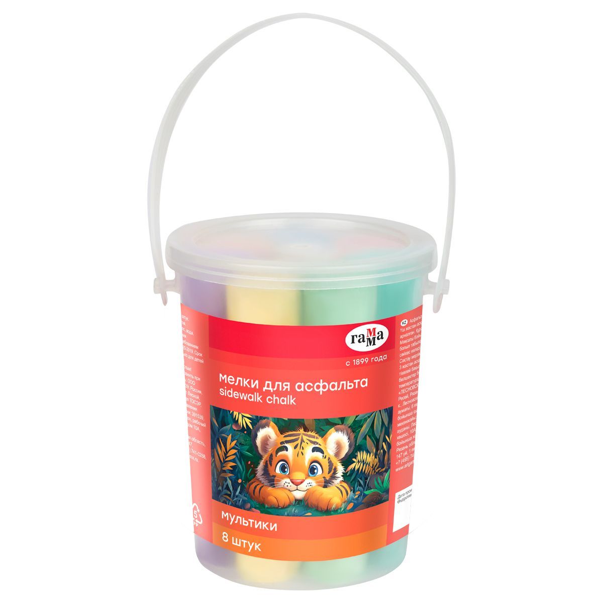 Мелки для асфальта Гамма "Мультики", цветные, 8шт., 8цв., круглые, пластиковое ведро