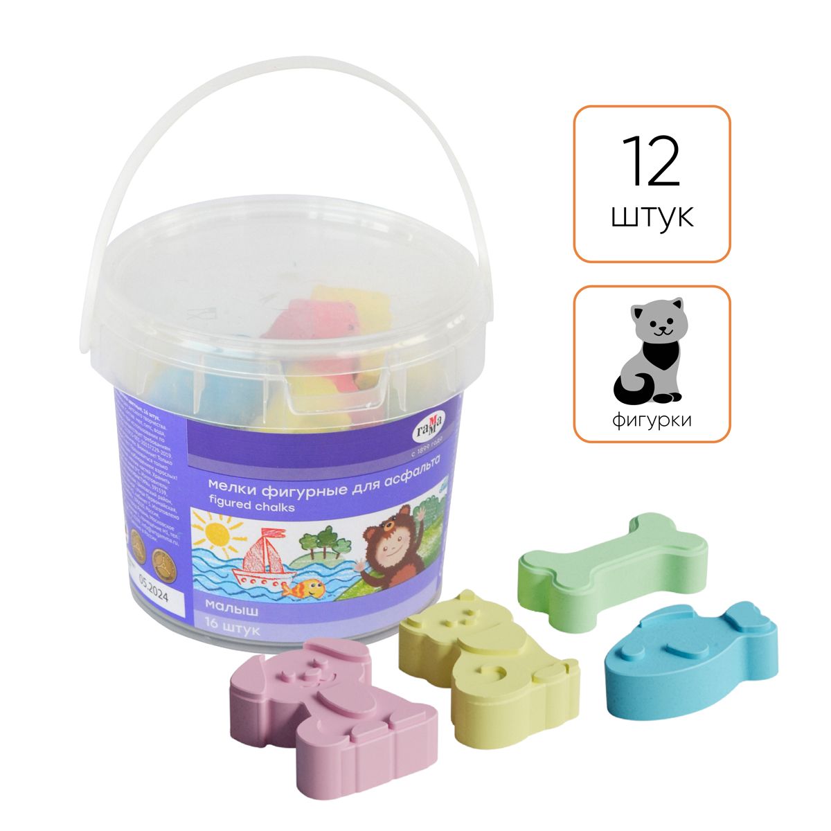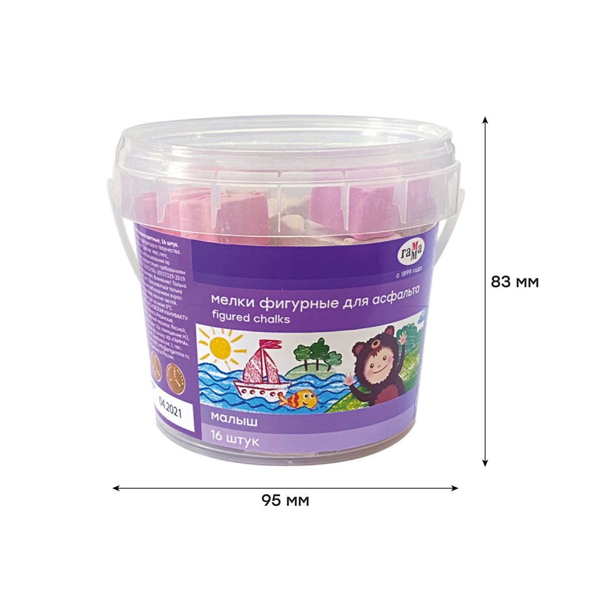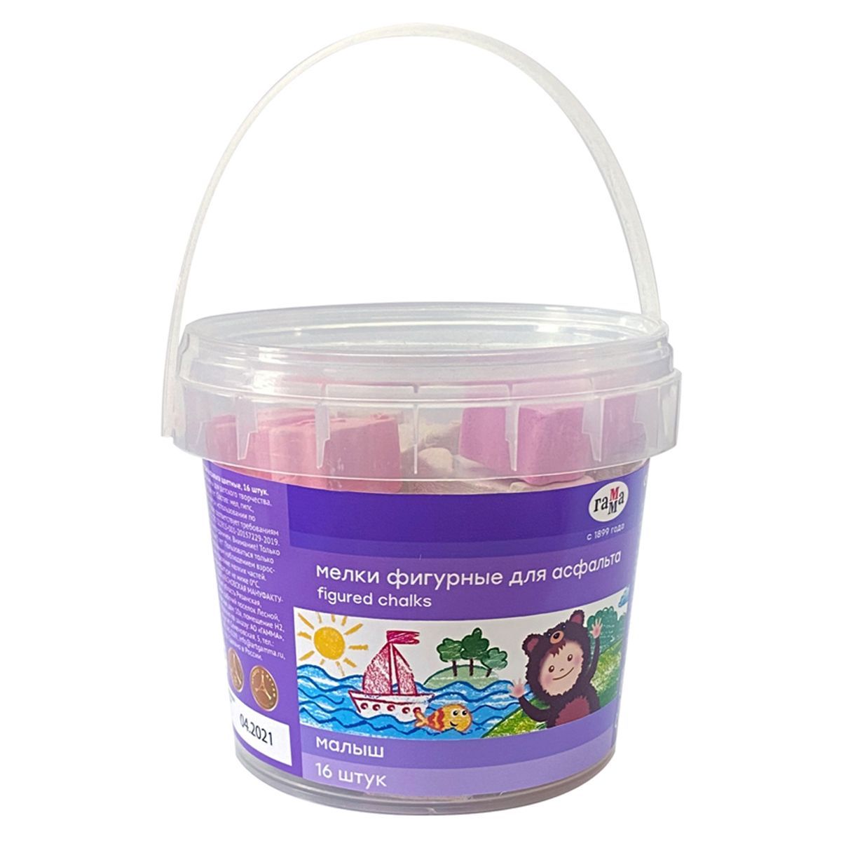 Мелки фигурные для асфальта Гамма "Малыш", ассорти, 16шт., пластиковое ведро