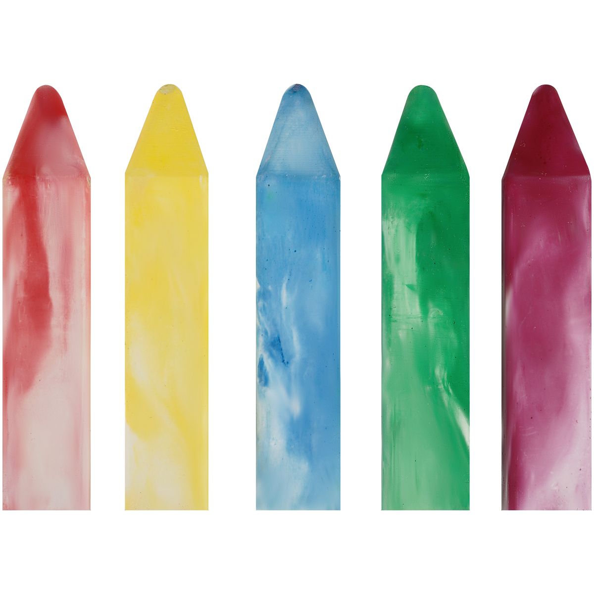 Мелки средней твёрдости пишут ярко, оставляя насыщенный след даже при лёгком нажатии. Остатки мела легко удаляются с рук влажными салфетками. В состав входят натуральные компоненты без вредных примесей: мел, гипс, вода, красящий пигмент.