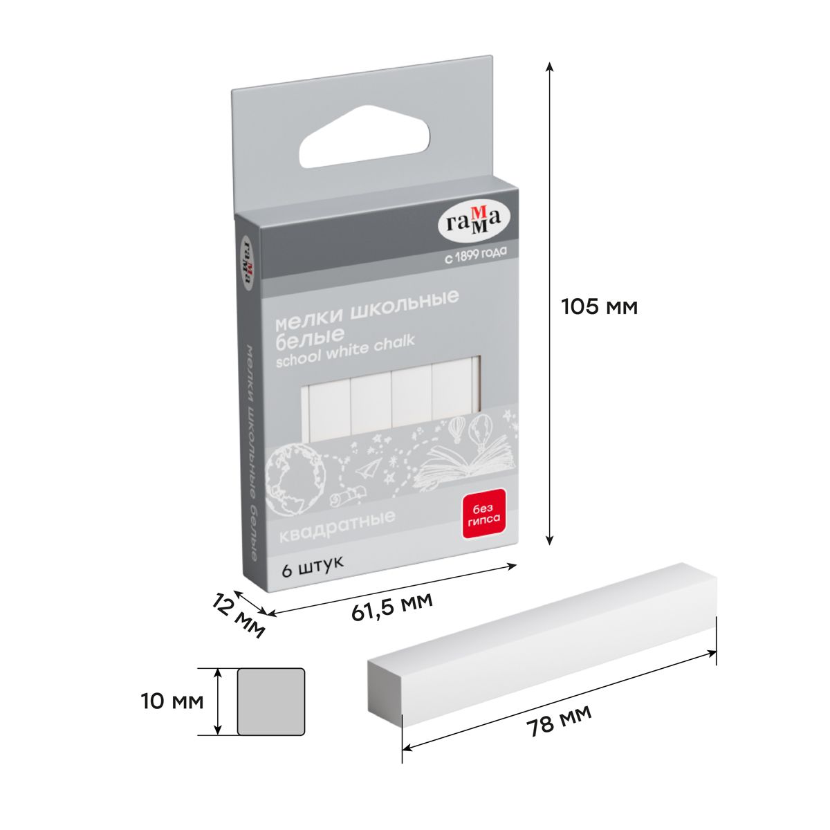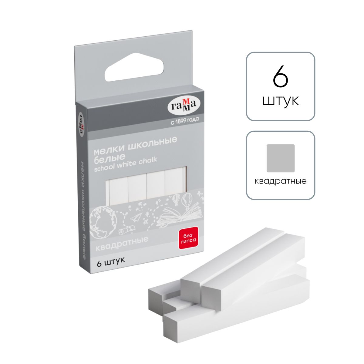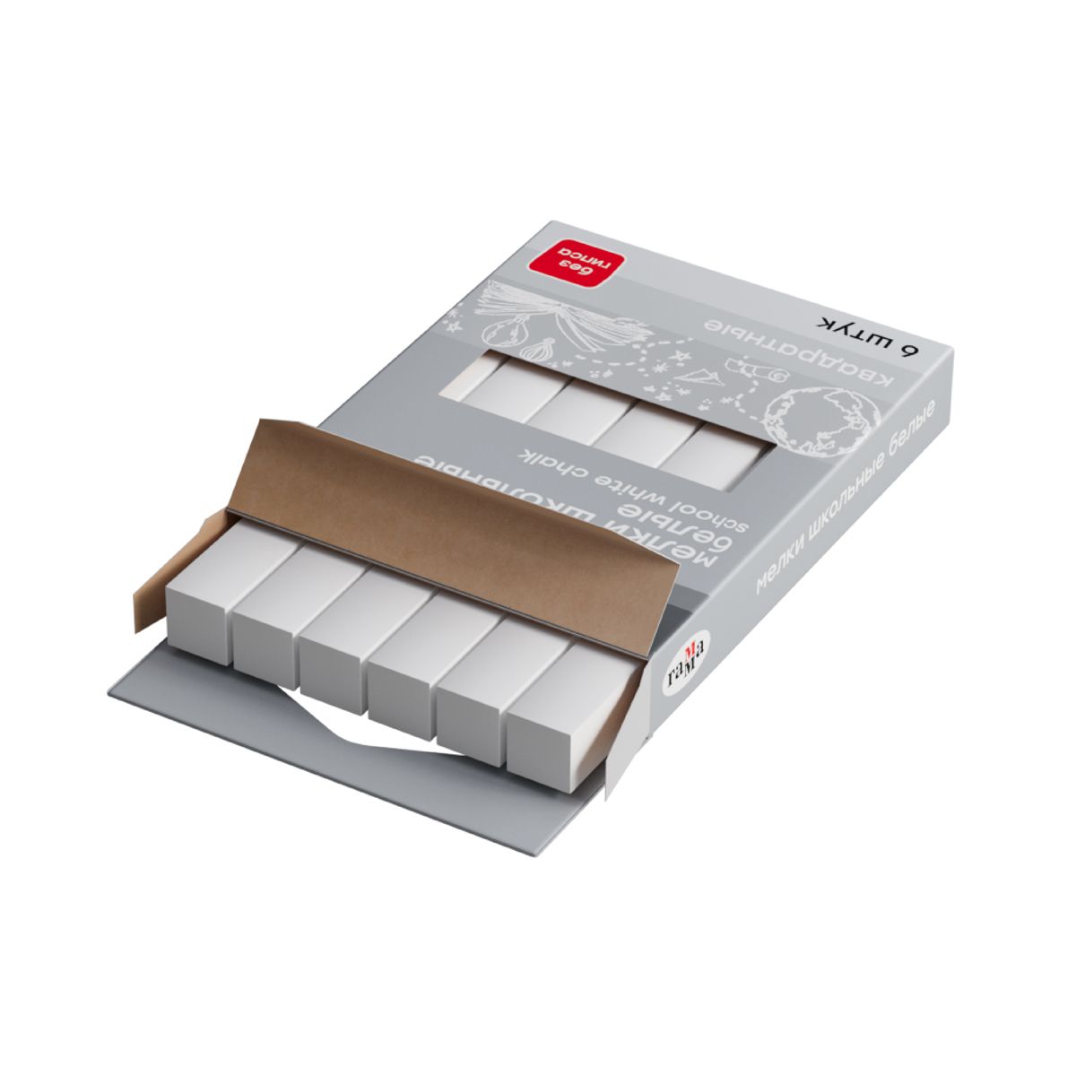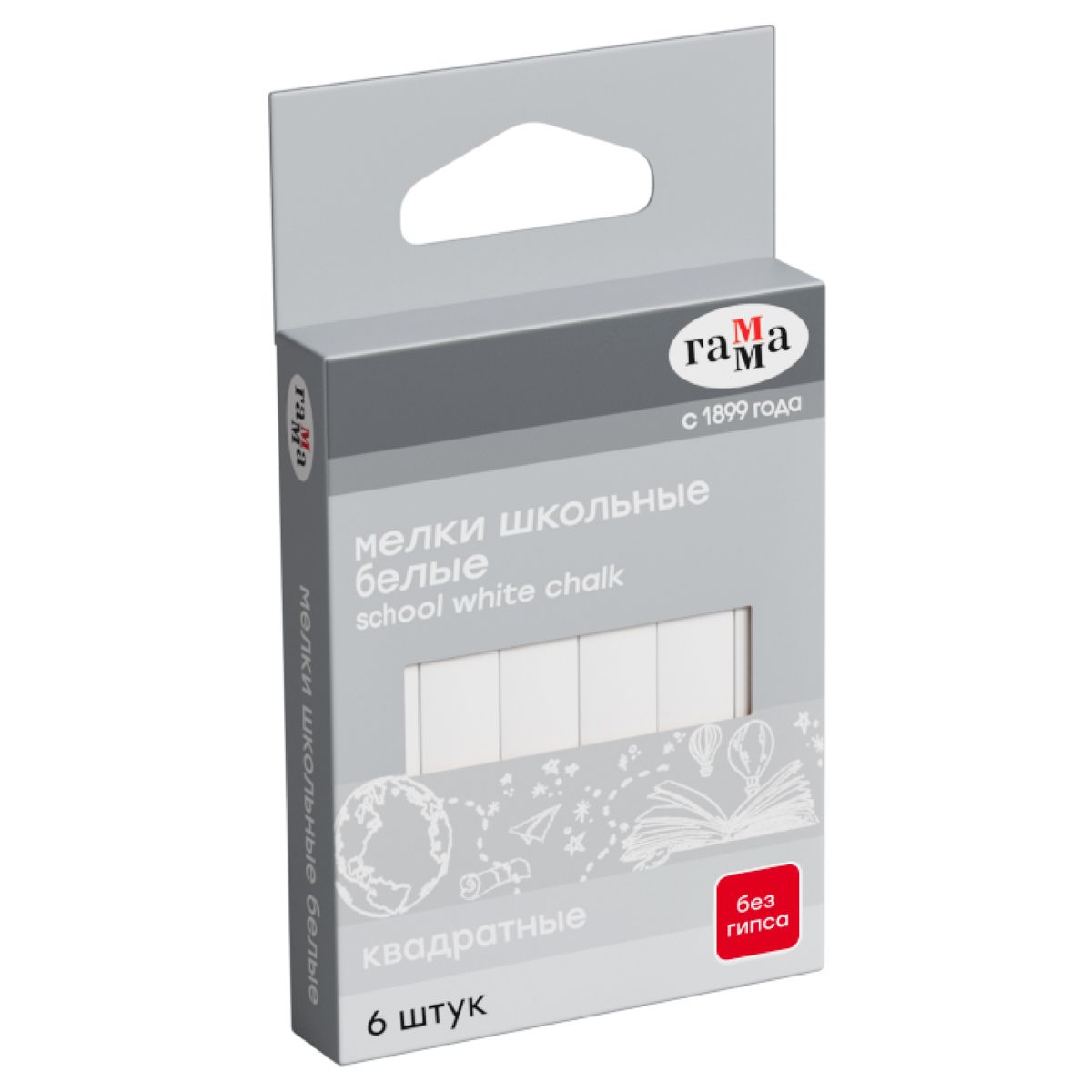 Мелки школьные Гамма, белые, 06шт., мягкие, квадратные, картонная упаковка, европодвес