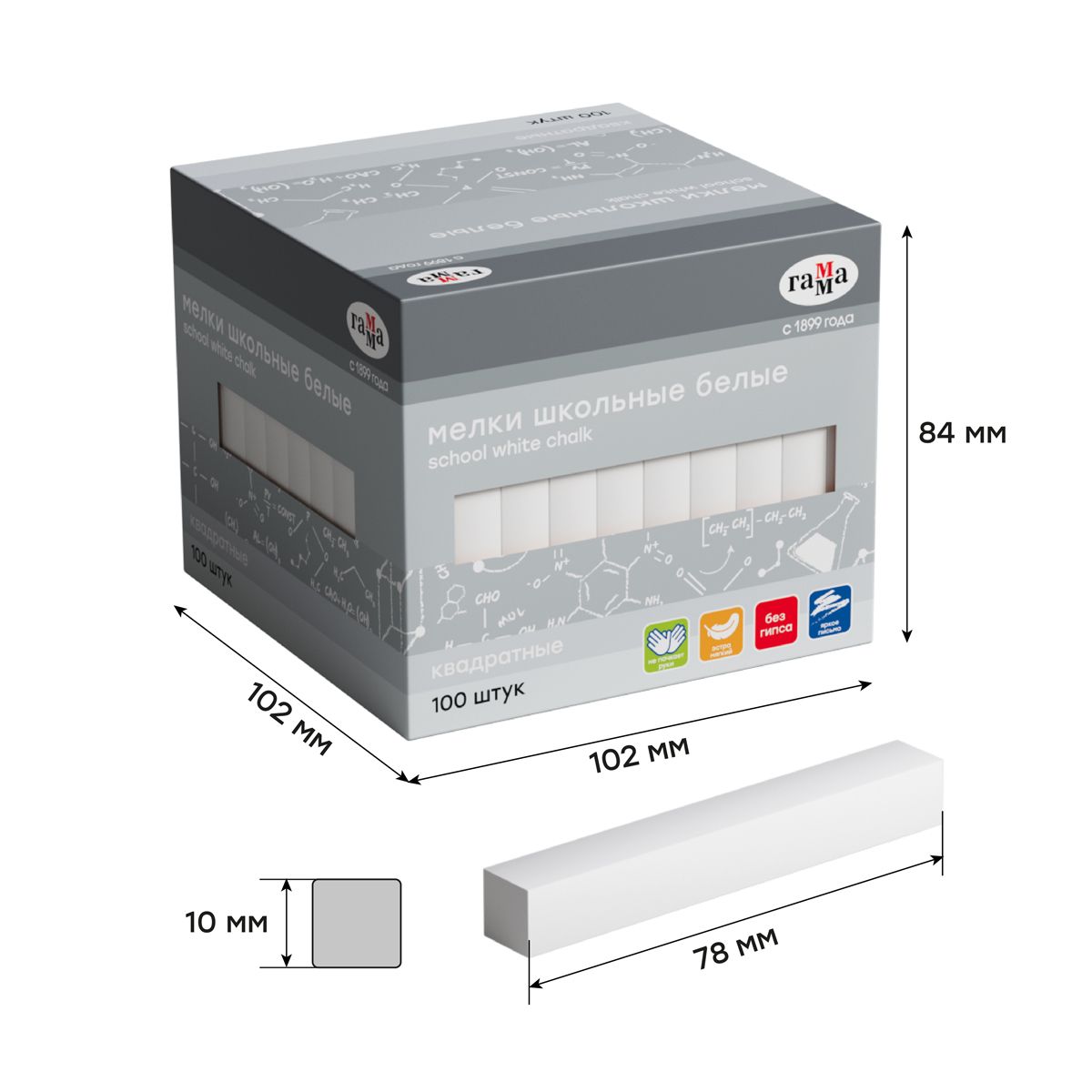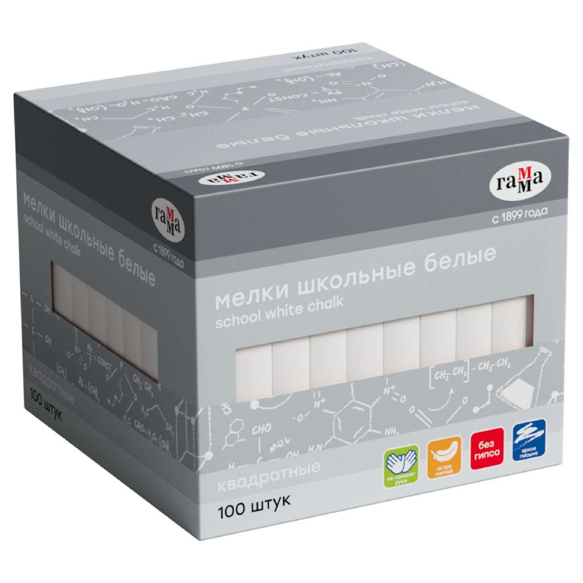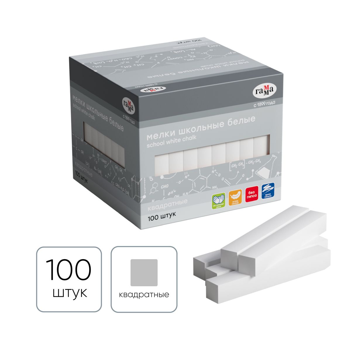 Мелки школьные Гамма, белые, 100шт., мягкие, квадратные, картонная коробка