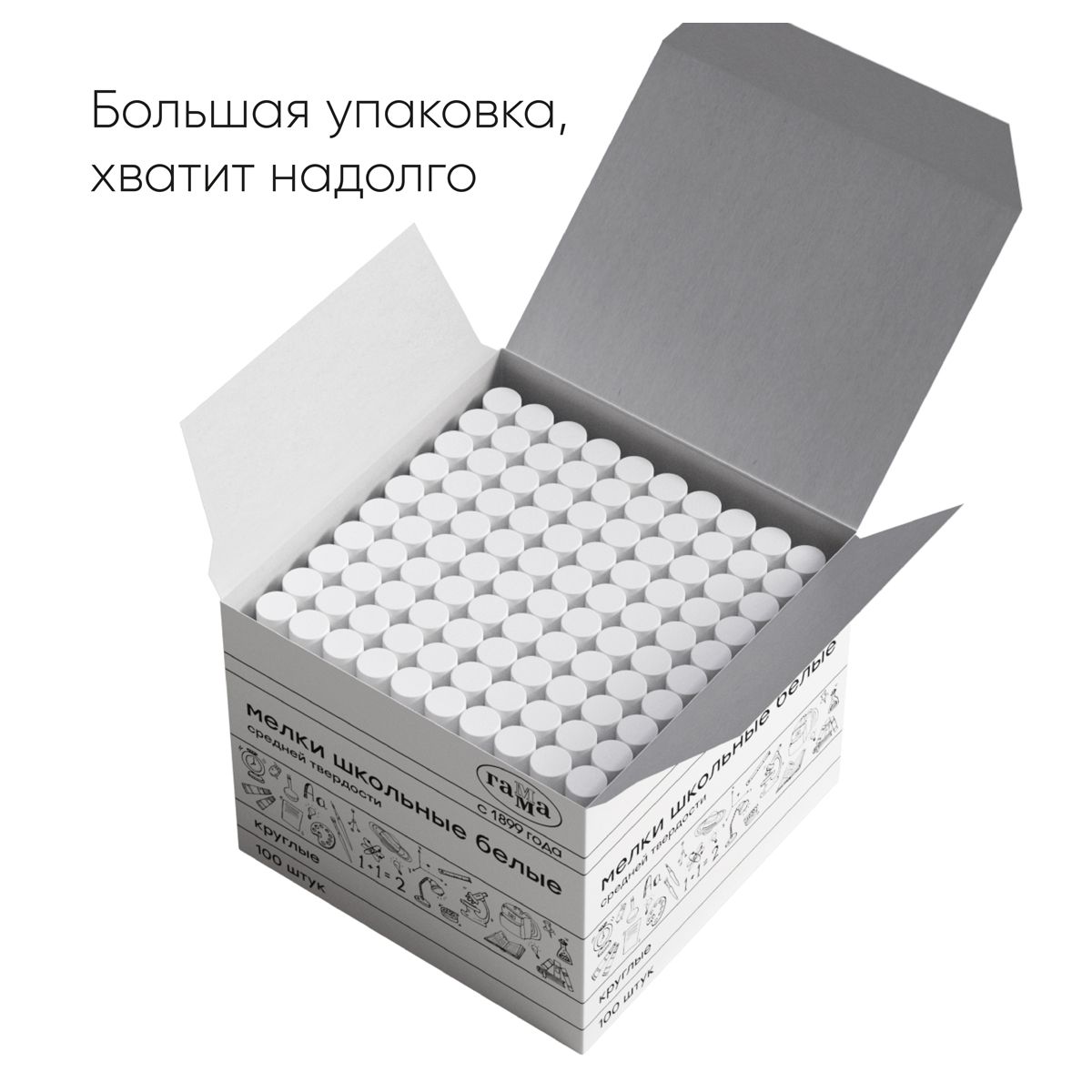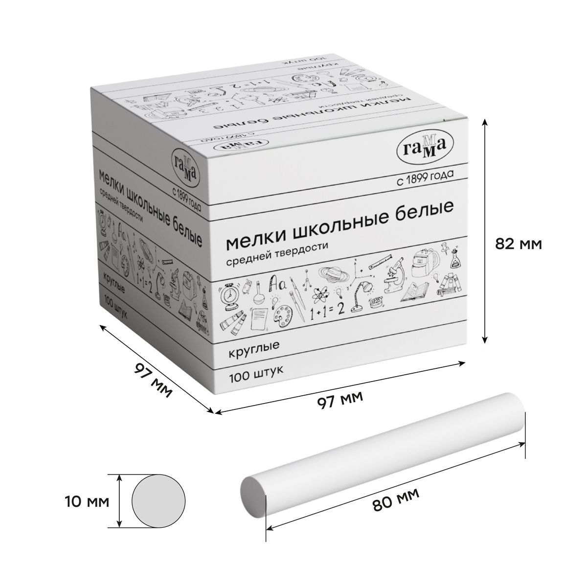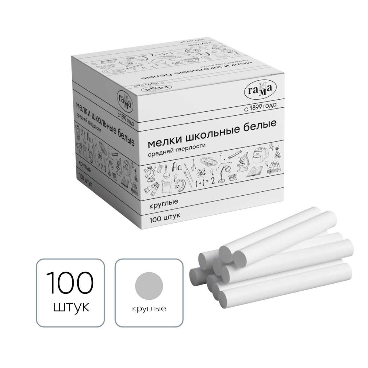 Мелки школьные Гамма, белые, 100шт., средней твердости, круглые, картонная коробка