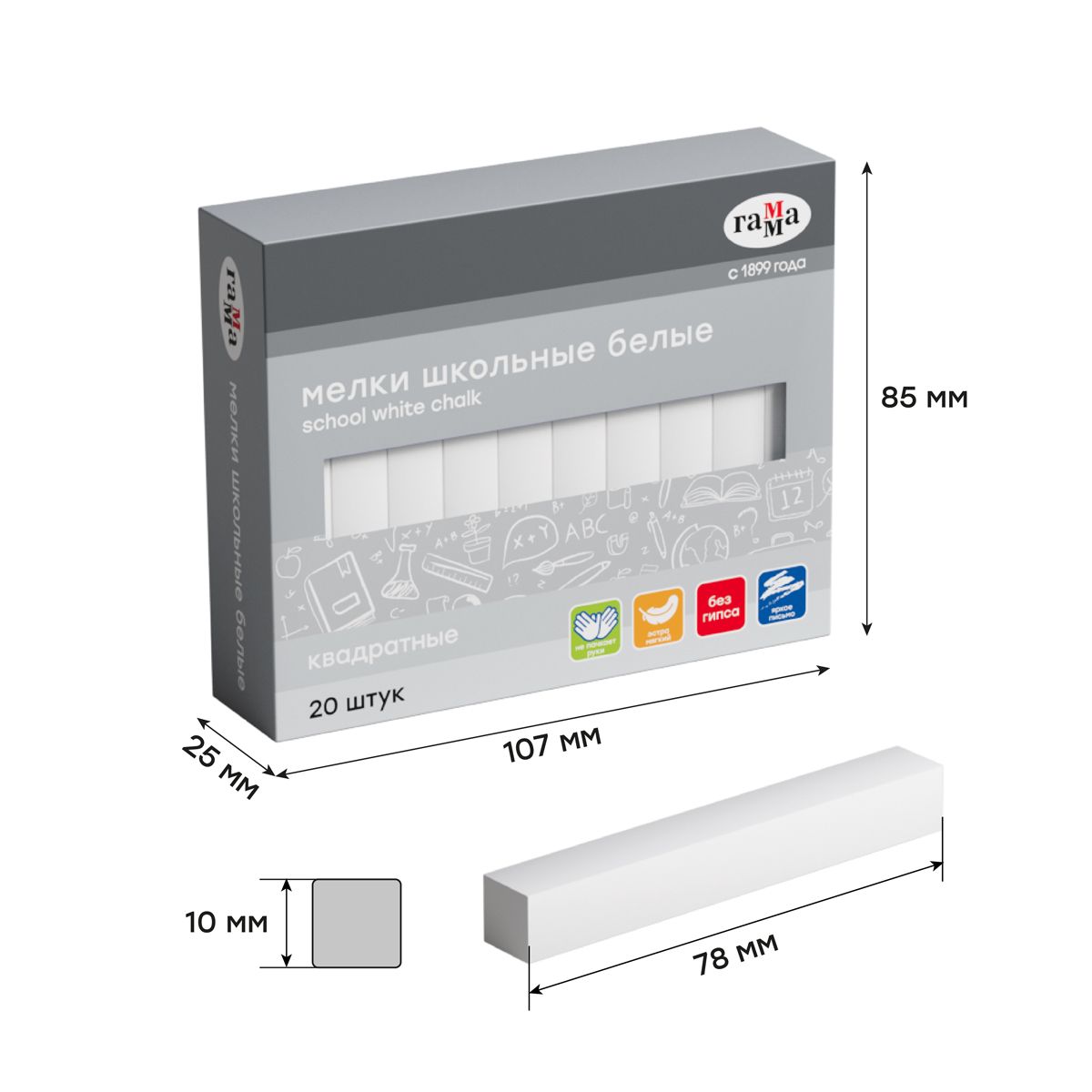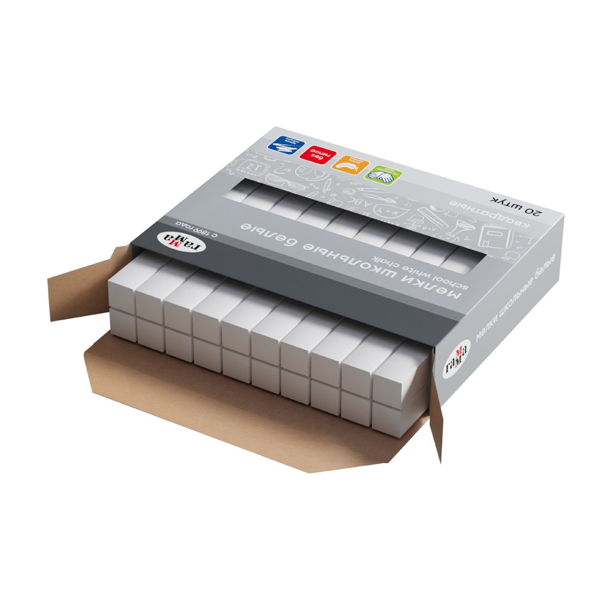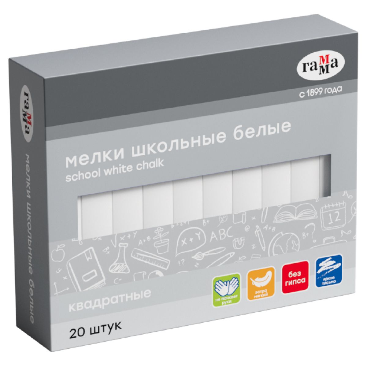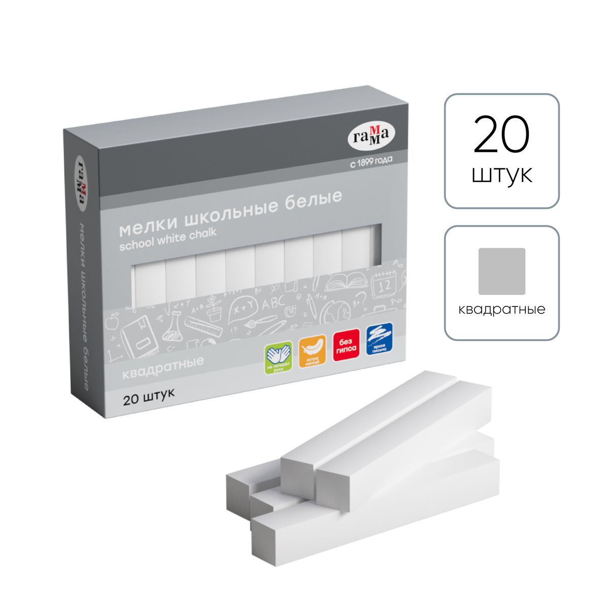 Мелки школьные Гамма, белые, 20шт., мягкие, квадратные, картонная коробка