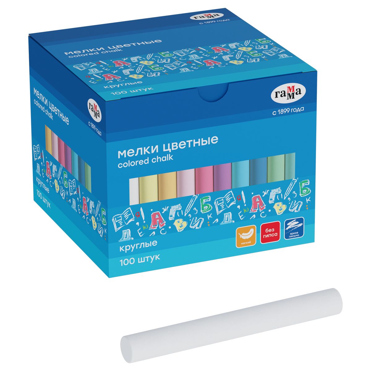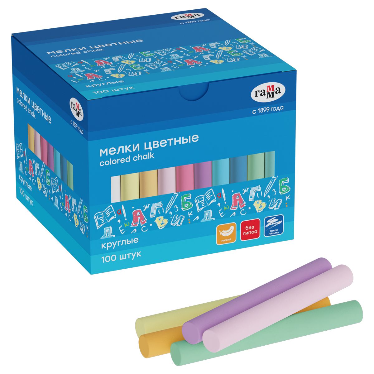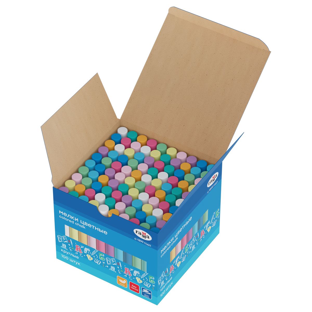 Мелки школьные Гамма, цветные, 100шт., мягкие, круглые, картонная коробка