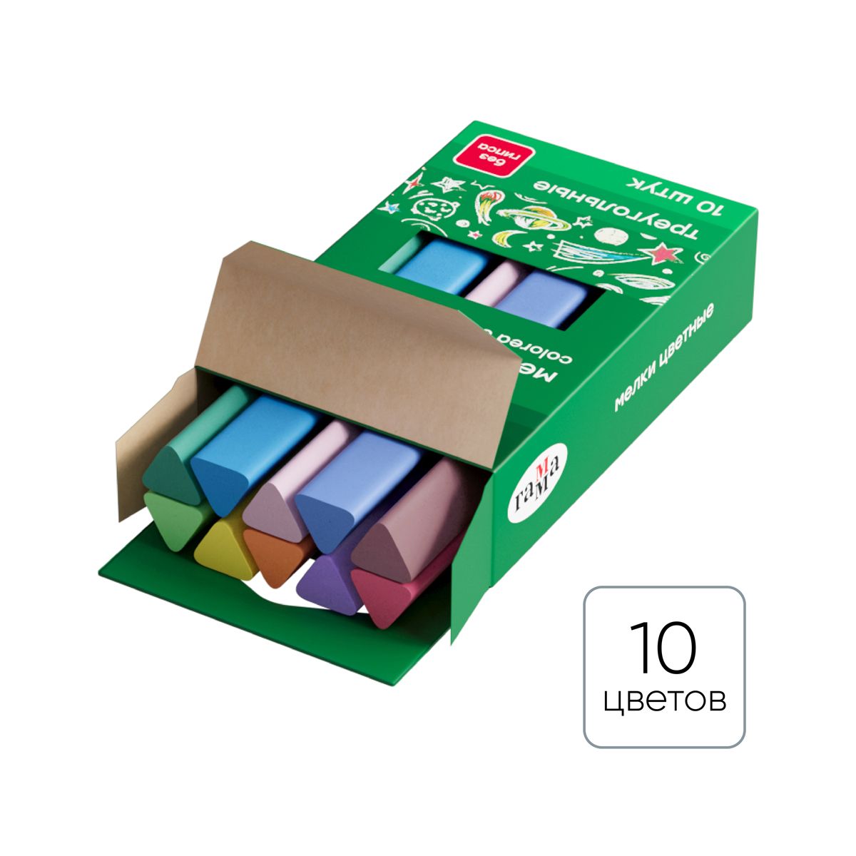 Мелки школьные Гамма, цветные, 10шт., мягкие, треугольные, картонная упаковка, европодвес