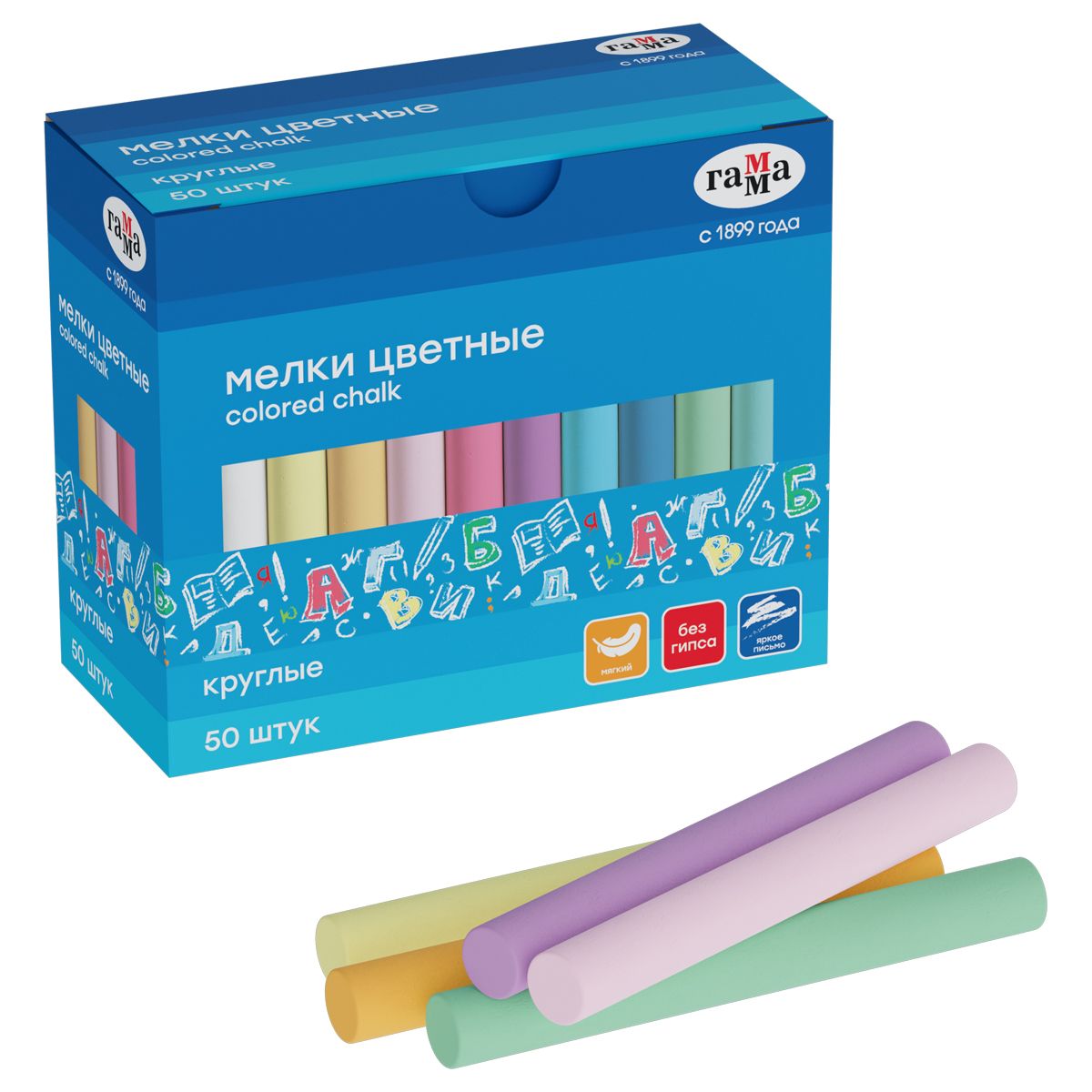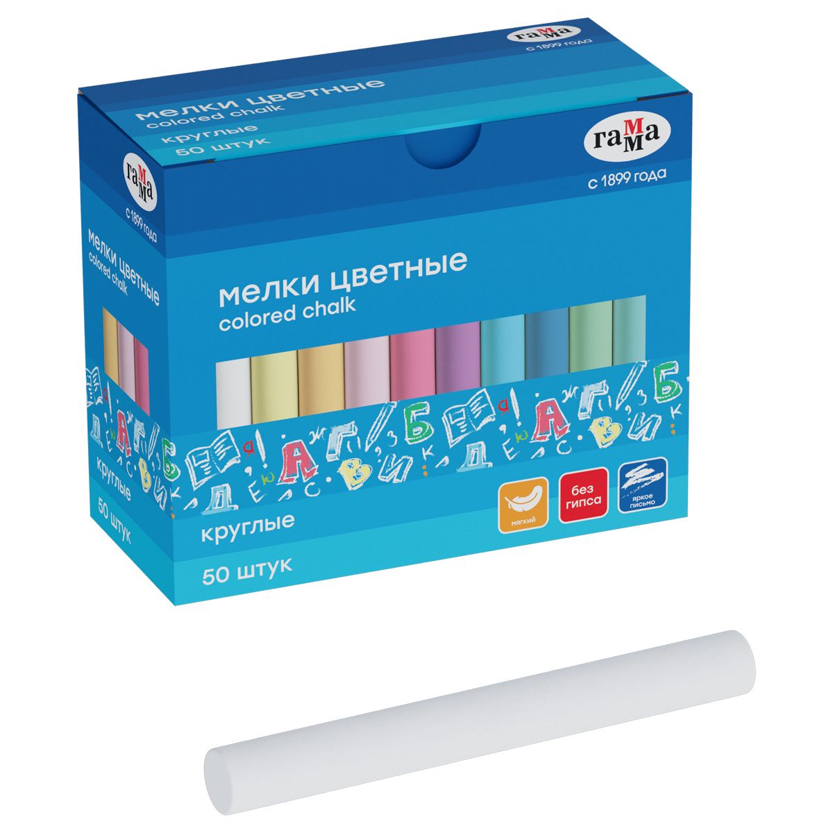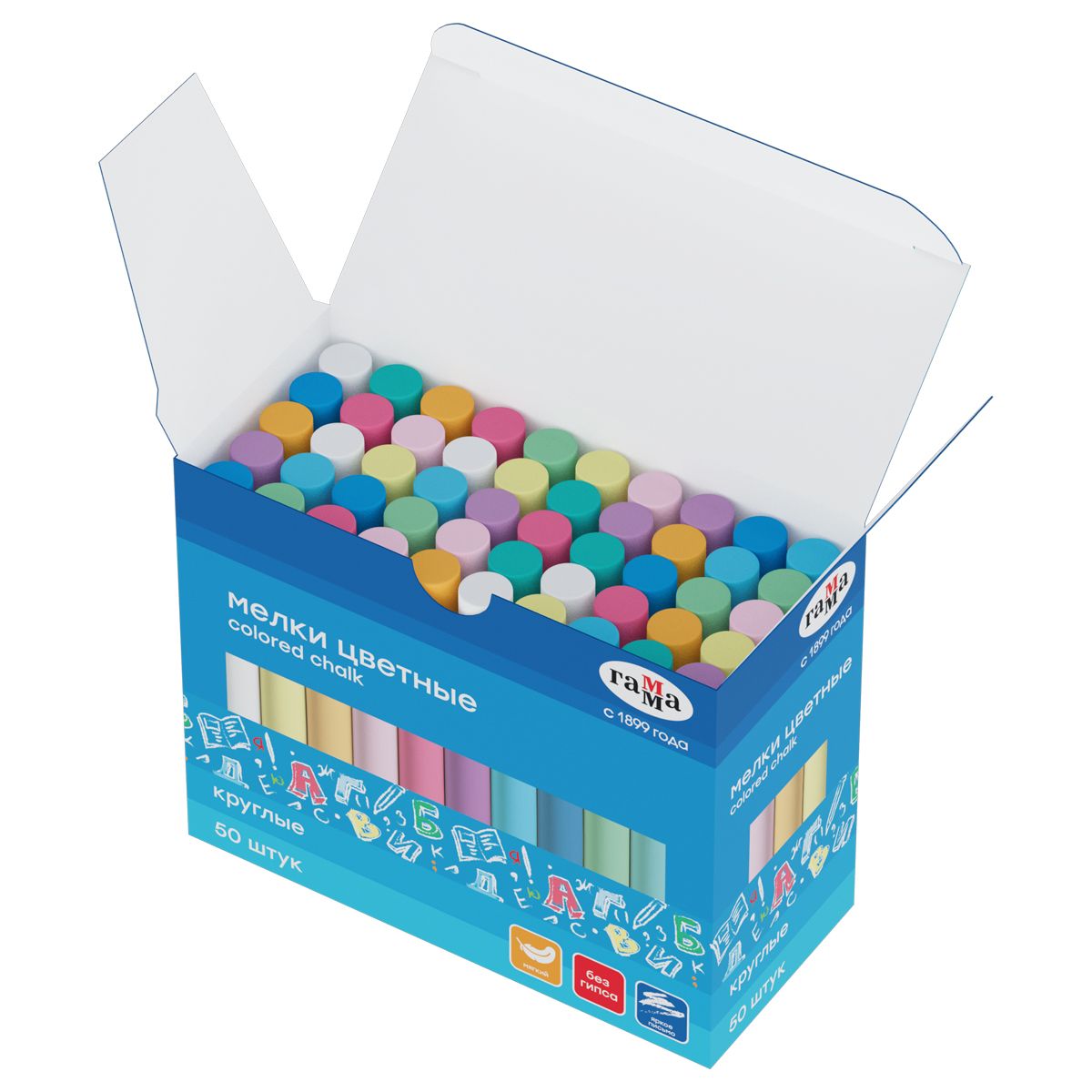 Мелки школьные Гамма, цветные, 50шт., мягкие, круглые, картонная коробка