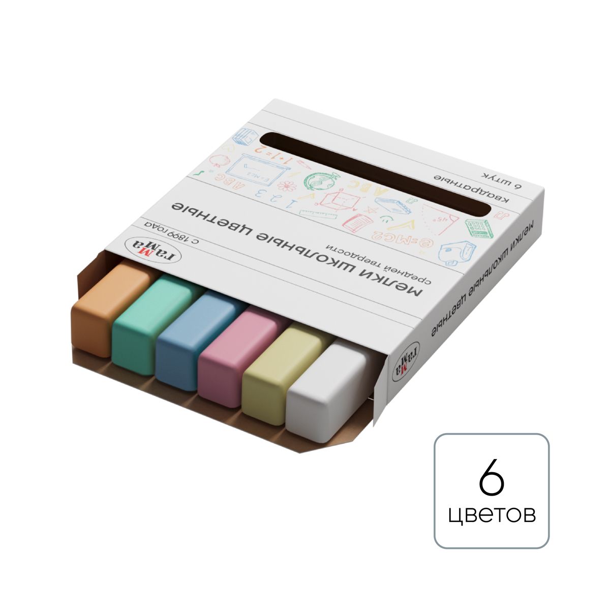 Мелки школьные цветные Гамма, 6шт., средней твердости, квадратные, картонная коробка