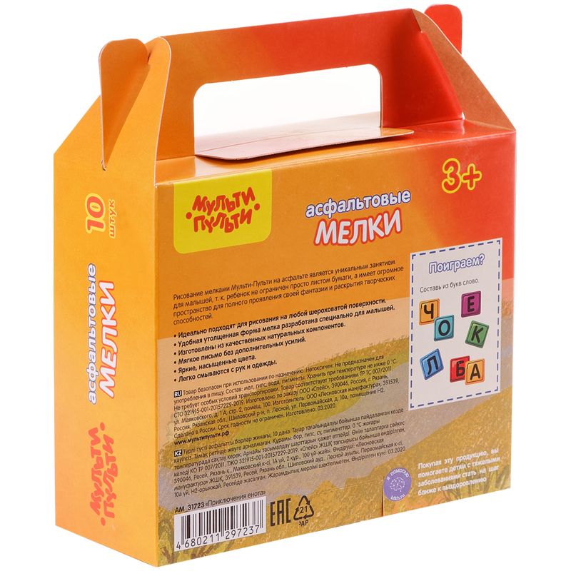 Мелки цветные для асфальта Мульти-Пульти, 10шт., 5цв., круглые картонная коробка