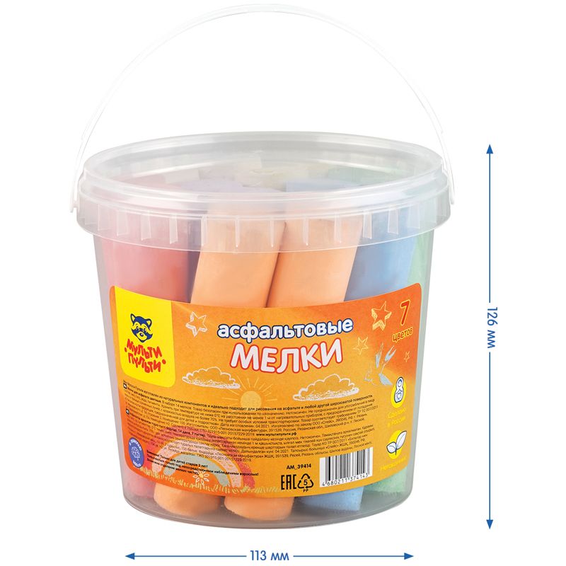 Мелки цветные для асфальта Мульти-Пульти, 14шт., 7цв., круглые, пластиковое ведро
