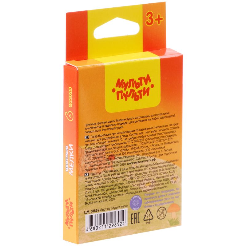 Мелки цветные Мульти-Пульти "Енот на опушке леса", 6цв., круглые, картонная коробка, европодвес