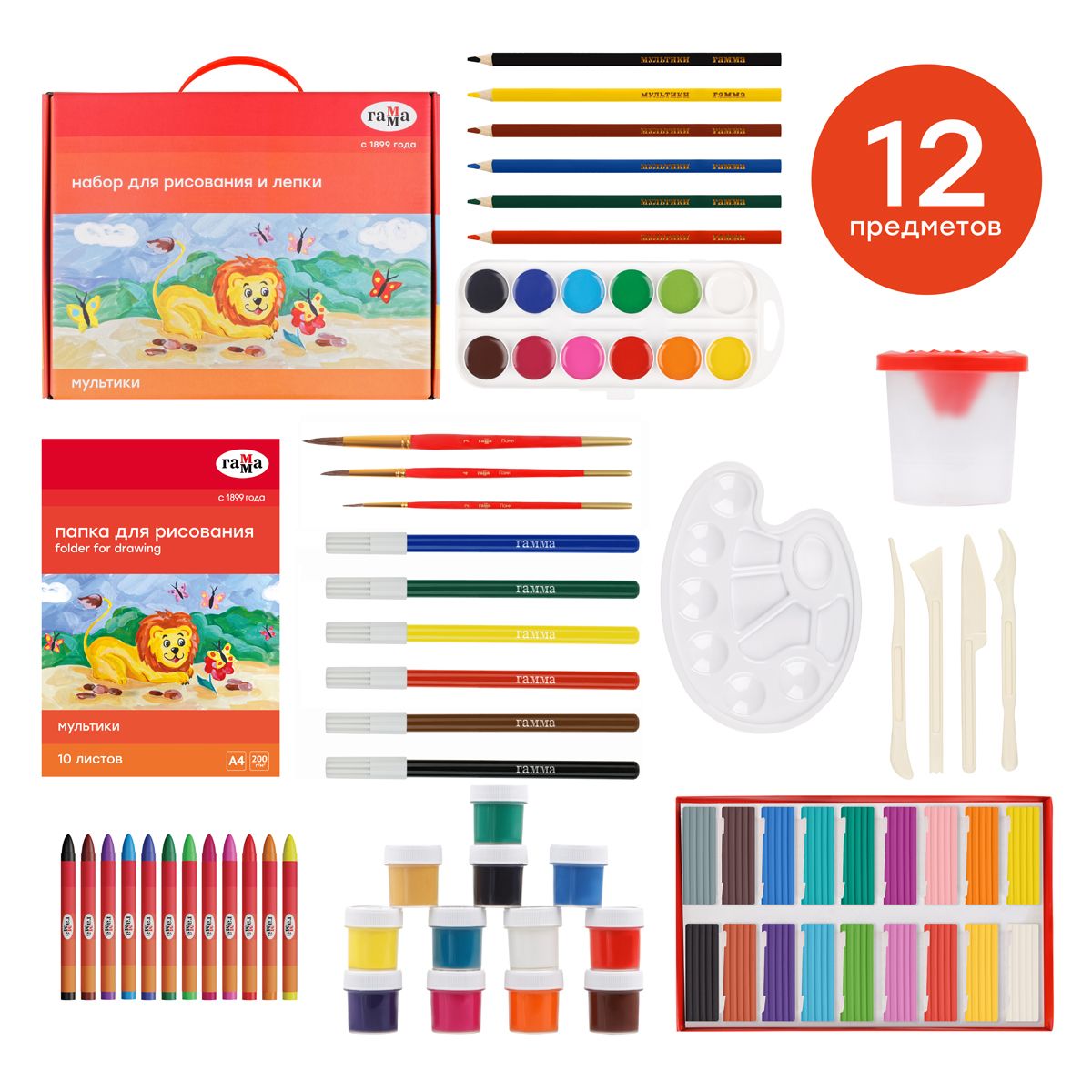 Набор для рисования и лепки Гамма "Мультики", 12 предметов, в подарочной коробке